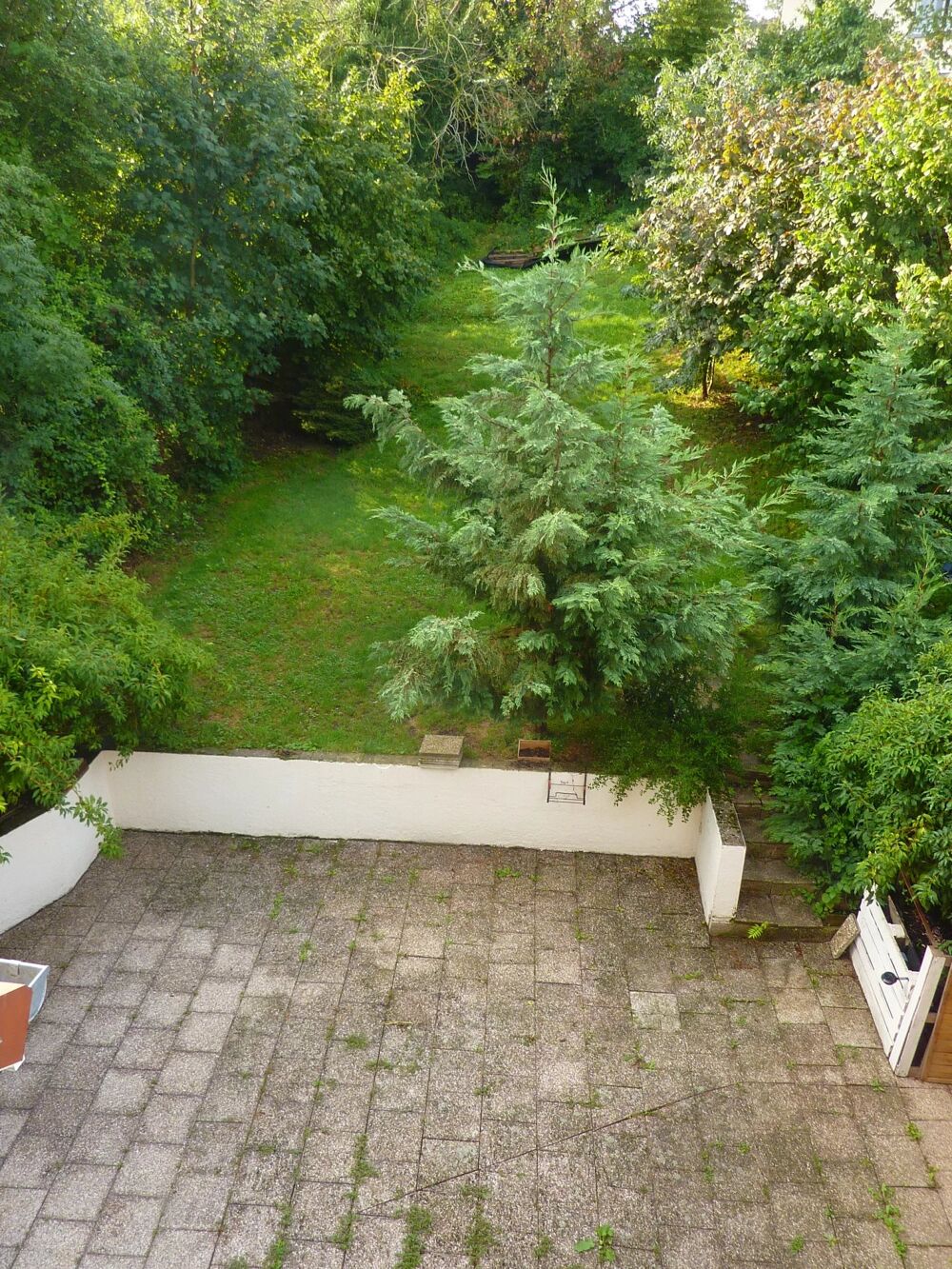 Joli terrain aménagé à l'arrière avec terrasse.