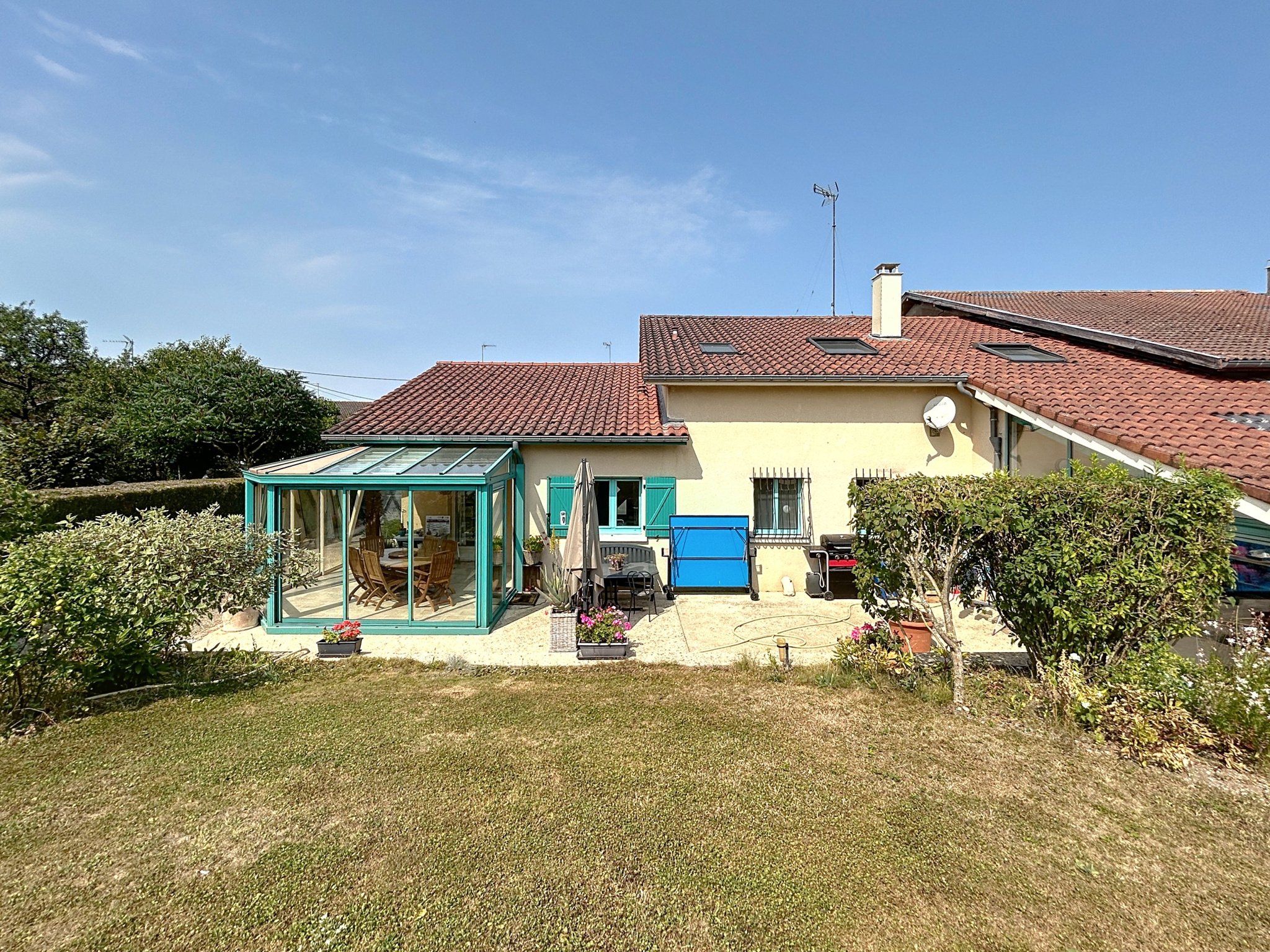 - Véranda, 17 m2, alu double vitrage, sol carrelage.