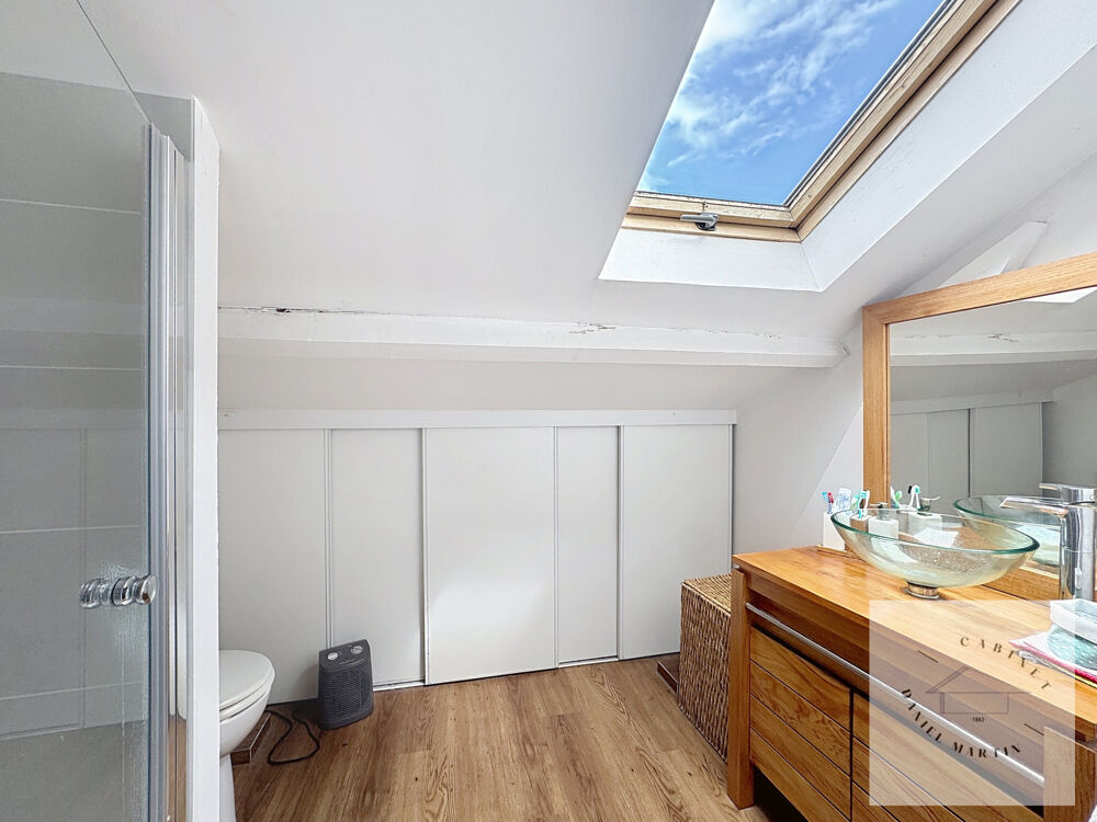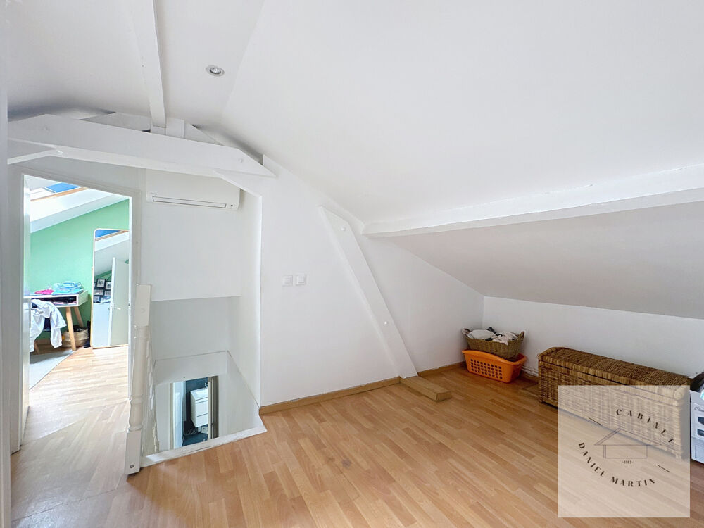 A l'étage les combles ont été aménagées pour accueillir deux chambres mansardées, un espace ouvert pouvant servir de bureau/salle de jeux… et une salle d'eau avec wc.