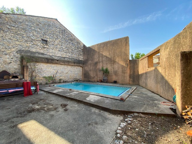 Au sud d'Alès, Charmante maison de village mitoyenne sur un côté, de 206 m2 habitable avec une très belle cour aménagée avec son coin barbecue et sa piscine.La maison se compose d'une cuisine équipée, une salle à manger, un salon, 4 chambres et 2 salles de bains.