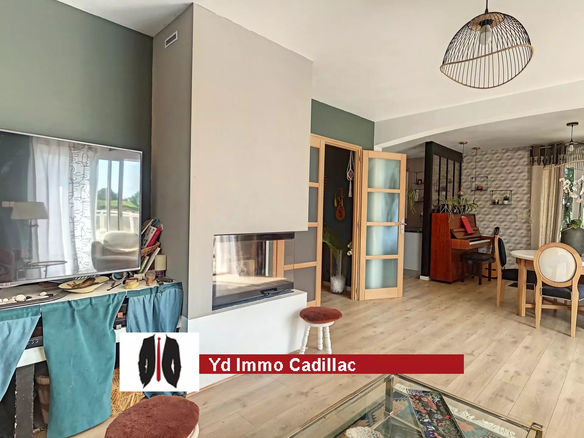 Cette maison familiale est de 2006 et se compose d'une agréable pièce de vie avec cheminée insert avec cuisine ouverte aménagée donnant sur la piscine sécurisée.