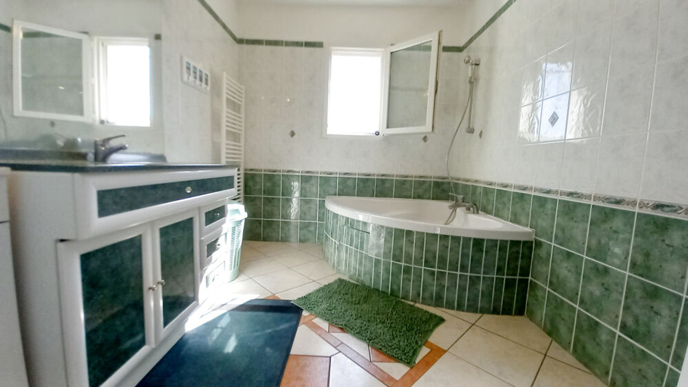 À l'étage, vous découvrirez trois belles chambres, une salle de bains et des toilettes séparés, parfaits pour accueillir toute la famille. À l'extérieur, la villa dispose d'une grande terrasse, d'un jardin arboré et ombragé pouvant accueillir une piscine (voir photo), ainsi que d'un garage attenant.