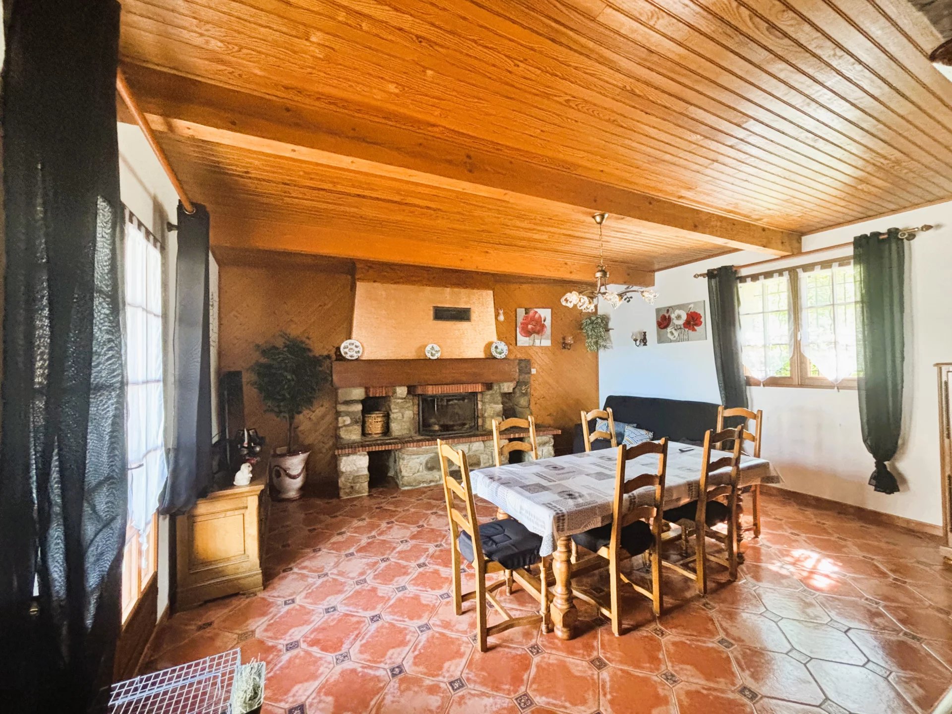 ? Côté jour : un séjour avec cheminée et une cuisine aménagée et équipée, toutes deux ouvertes sur une grande terrasse en partie couverte, parfaite pour prolonger vos moments conviviaux, dans un cadre paisible où la nature semble toujours à portée de main.