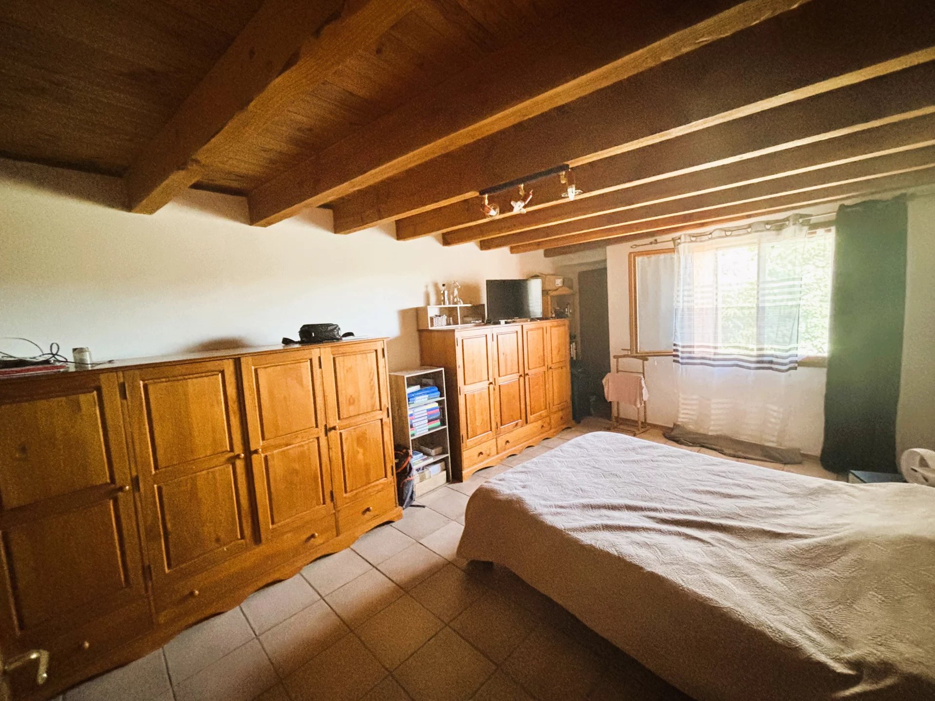 Les chambres bénéficient de la climatisation et d'un chauffage par pompe à chaleur, complété par un répartiteur relié directement à la cheminée.