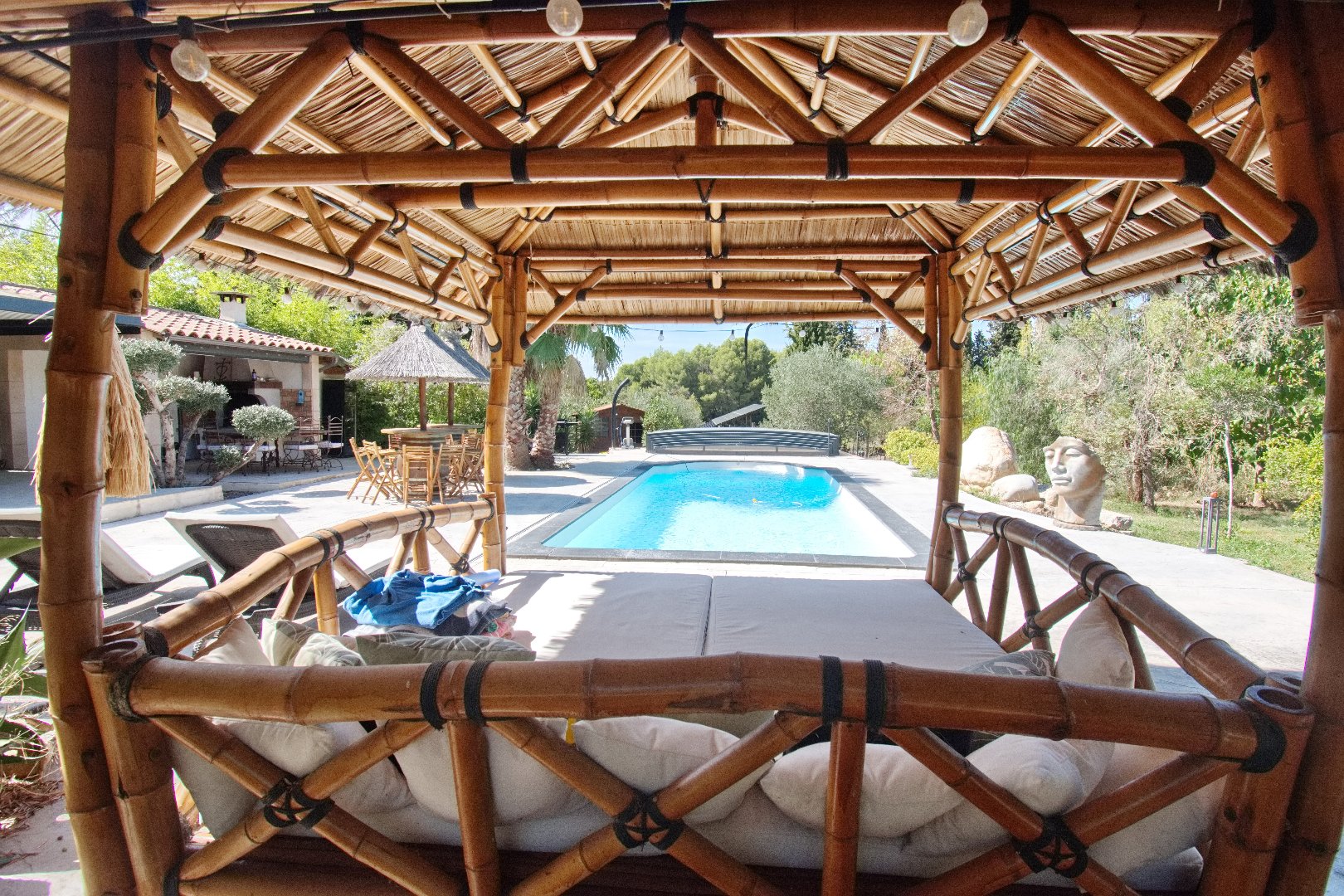 Une cuisine d'été parfaitement équipée complète l'ensemble, idéale pour recevoir famille et amis dans un cadre privilégié.