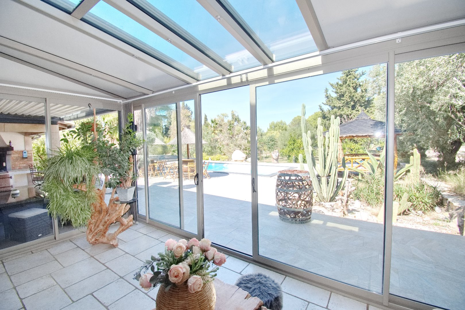Une véranda de 21,72 m² prolonge l'espace et offre une vue imprenable sur la piscine.