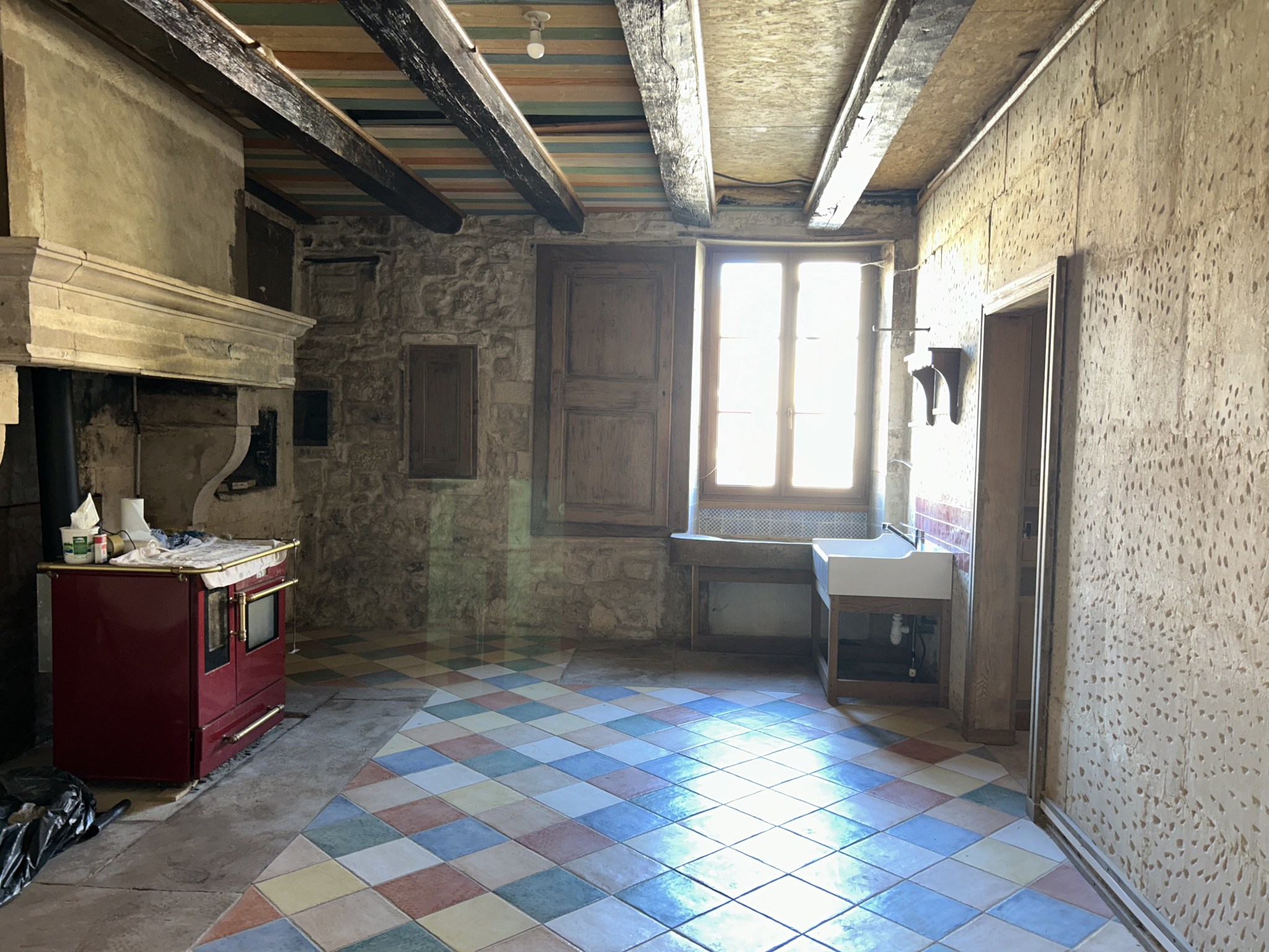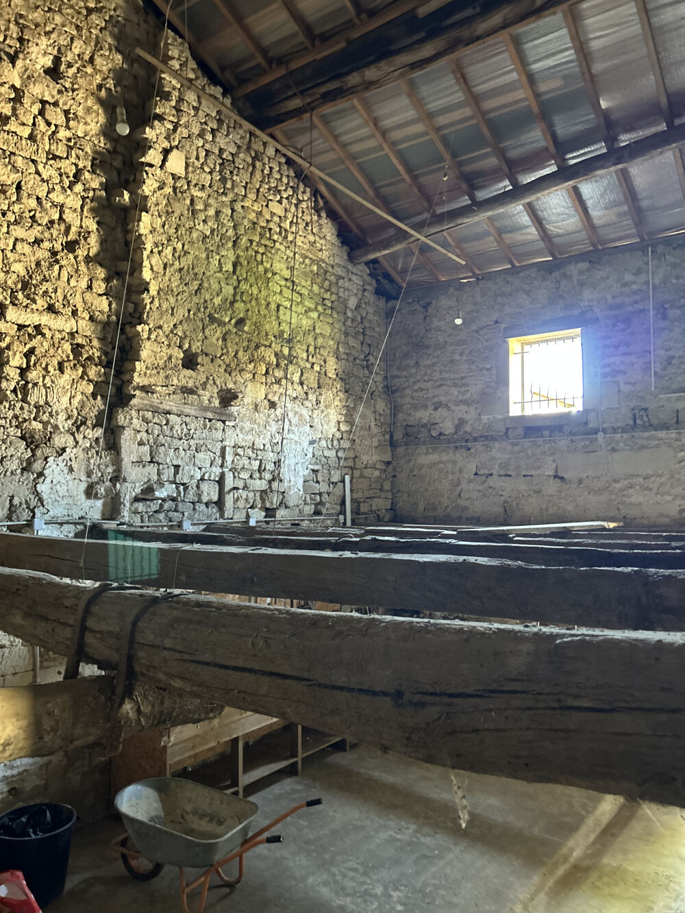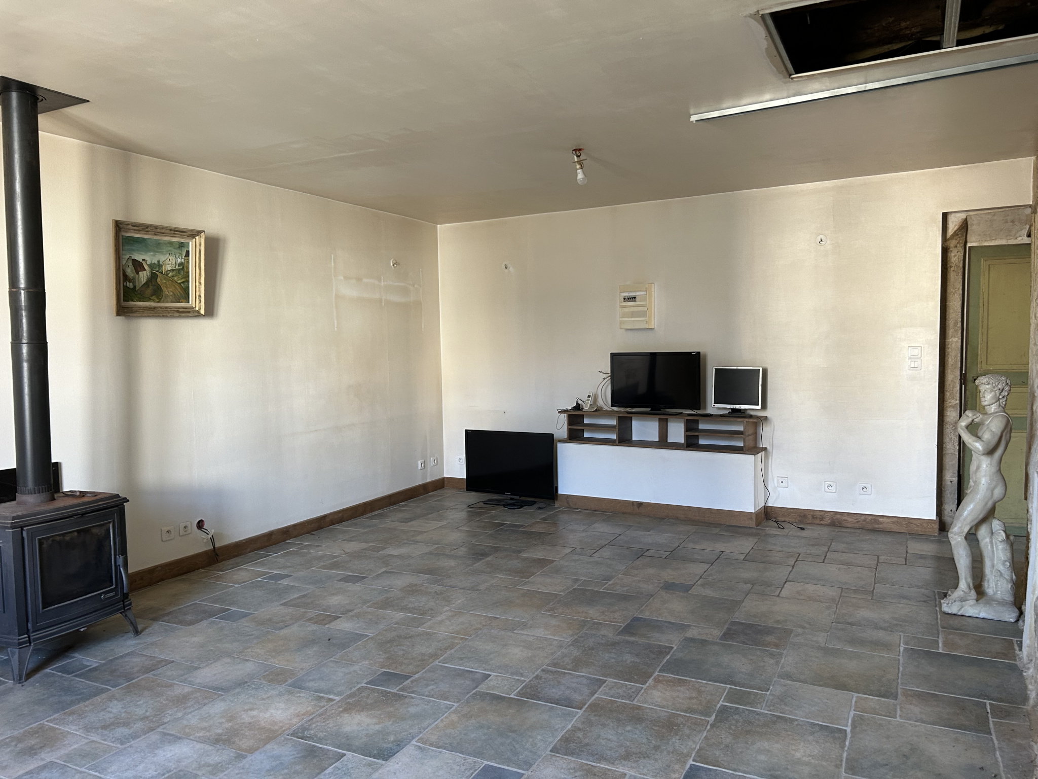 Une partie de la maison a déjà été rénovée : les fenêtres sont en double vitrage. Le bien est équipé d'un chauffage au bois.