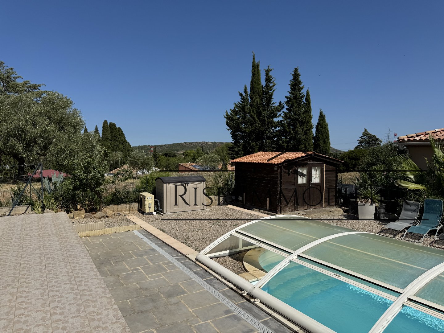Côté extérieur, la détente est au rendez-vous : une véranda lumineuse d'environ 11 m² avec volet roulant électrique, une terrasse d'environ 25 m² et surtout une magnifique piscine chauffée au sel de 8x4 m, protégée par un dôme, équipée d'une filtration récente et d'un électrolyseur automatique.
