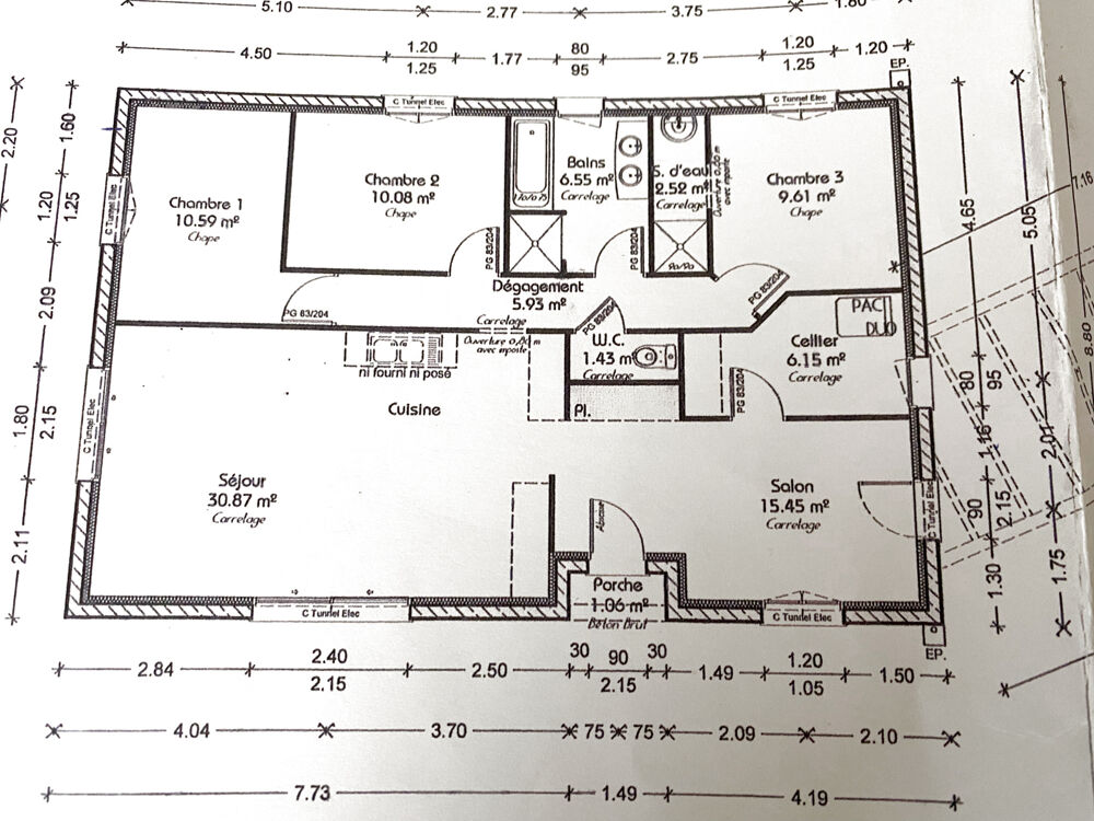 Elle se compose d'une spacieuse cuisine aménagée, d'un salon, de trois chambre dont une avec sa salle d'eau privé, 1 salle d'eau, 1 WC et une buanderie.