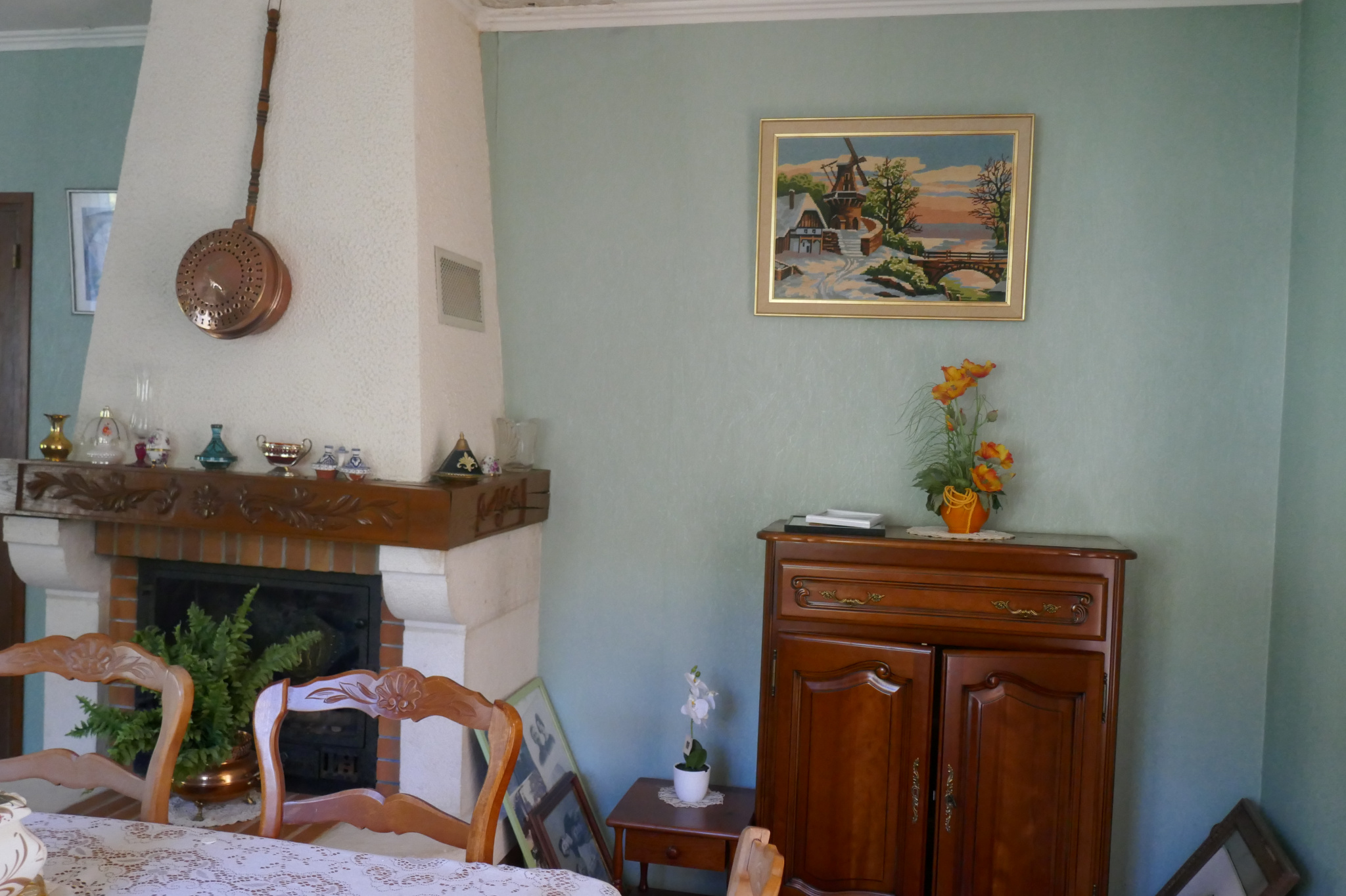 - une entrée, séjour/ salle à manger avec une cheminée,