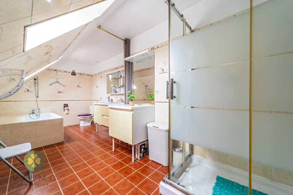 L'étage dispose de 3 chambres supplémentaires dont une de près de 27m2 et deux avec placards, ainsi qu'une grande salle de bain équipée d'une baignoire, d'une douche et d'un wc. Possibilité de créer une suite parentale.