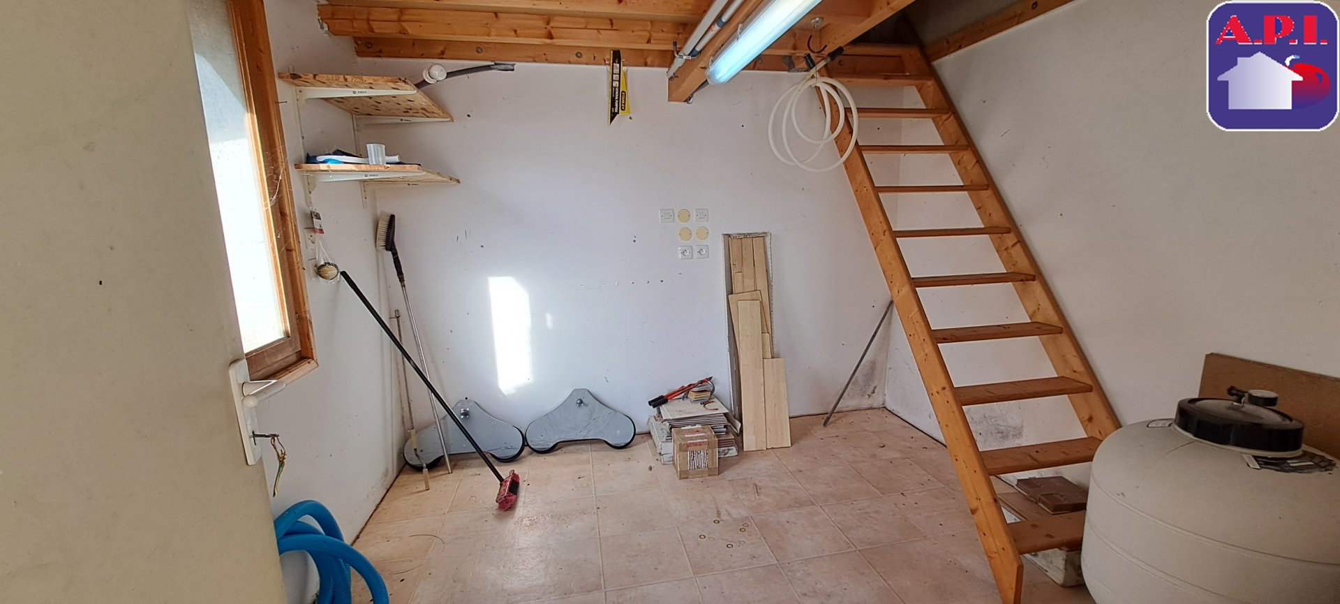 Un garage de 16,50 m² avec portail automatique, un abri bois, un atelier de jardin, ainsi qu'un abri voiture avec portillon d'entrée complètent les prestations.