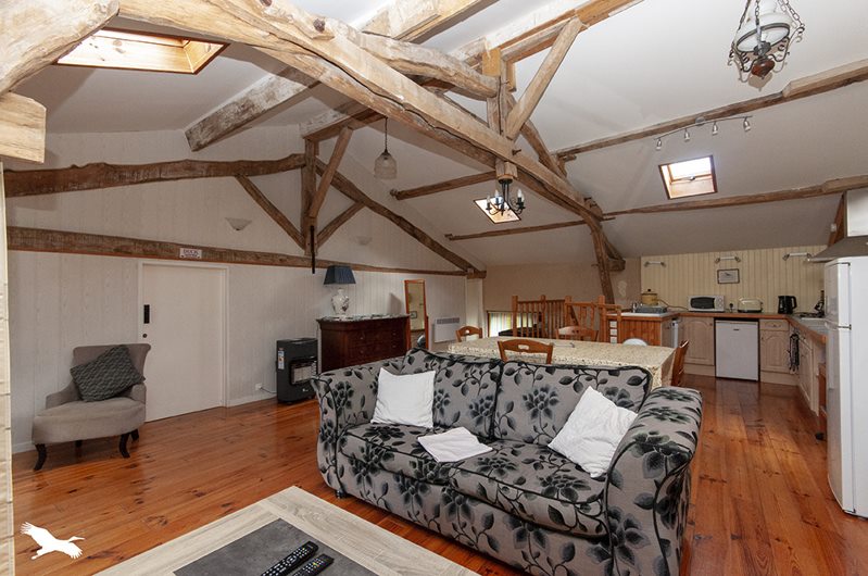 Gîte indépendant de 75 m² environ avec revenus locatif composé d'un séjour avec cuisine ouverte, 2 chambres suitées.