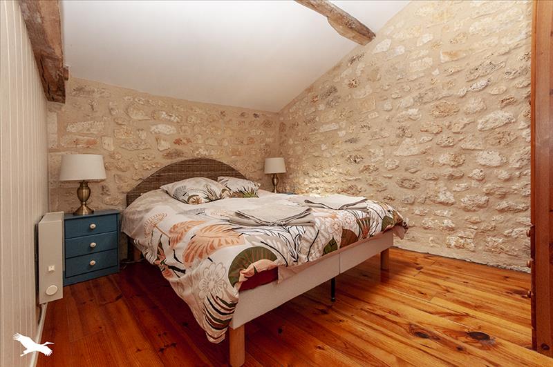 Au coeur d'un hameau calme, ensemble en pierre, maison principale avec cuisine équipée, séjour, salon avec poêle à bois et suite parentale.