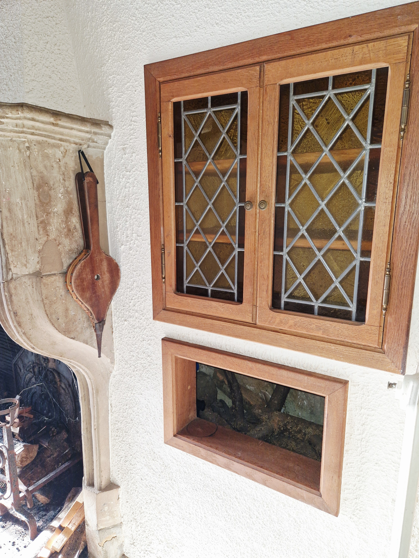 chauffage central fuel ancien, cheminée en pierre.
