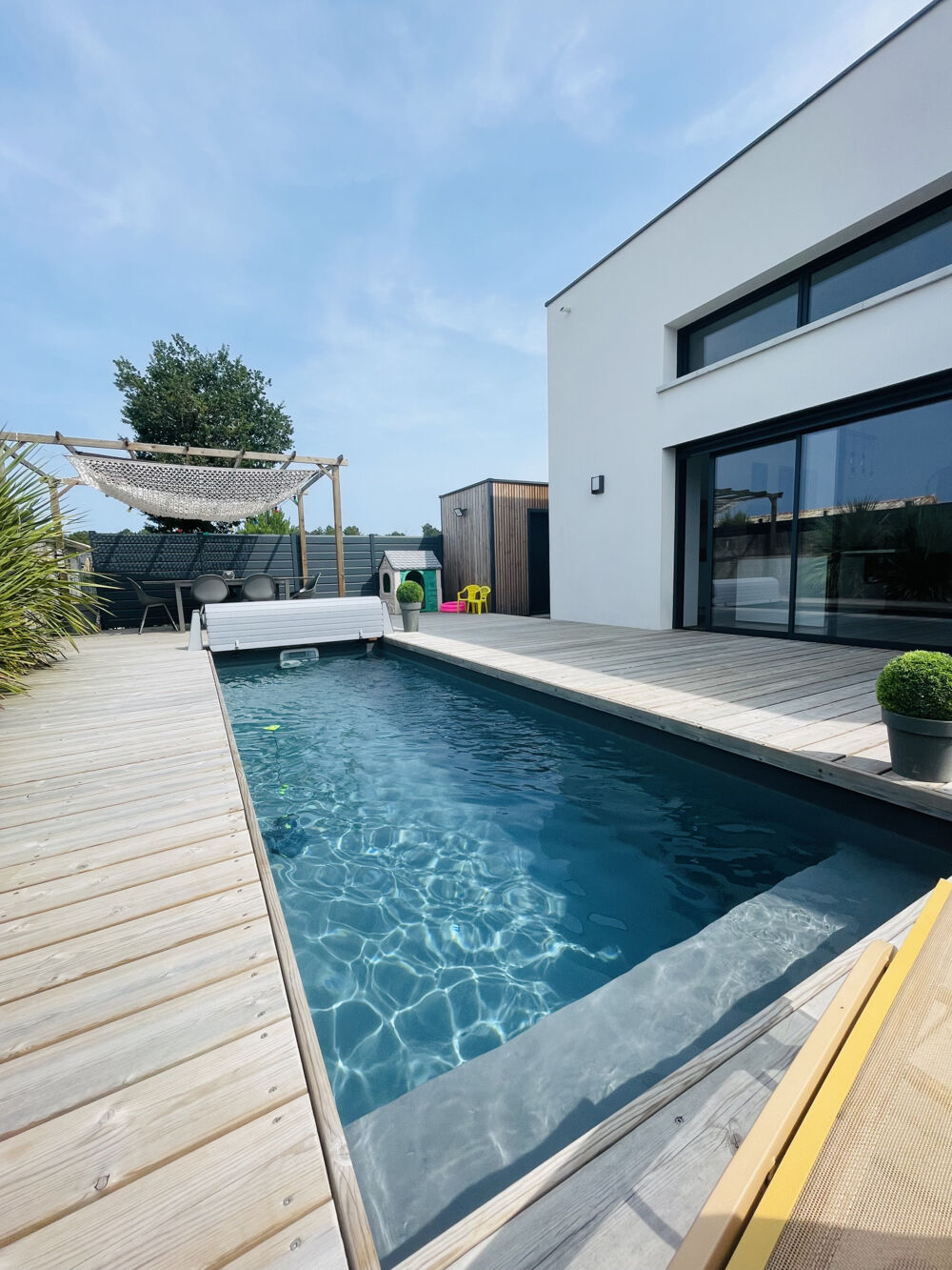 Coup de cœur assuré ! Laissez-vous séduire par cette magnifique maison neuve de 125 m2, conçue avec goût et matériaux de qualité. Profitez d'une pièce de vie lumineuse avec cuisine ouverte s'ouvrant sur une piscine chauffée et sécurisée. Le confort est au rendez-vous avec 3 chambres, dont une suite parentale avec dressing et salle d'eau. Le tout dans un environnement paisible, à proximité du centre-ville et de la gare permettant de rejoindre Bordeaux et Arcachon.