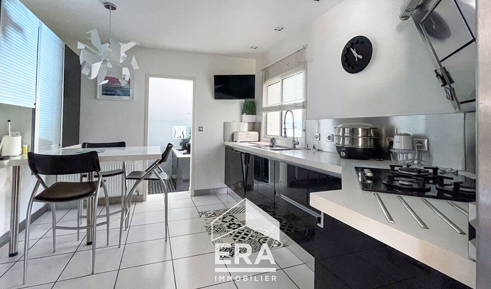 Derrière sa façade discrète, la maison déploie environ 260 m² de confort et de lumière. Le vaste salon, baigné de soleil et réchauffé par une cheminée insert, s'ouvre naturellement sur l'extérieur, invitant à la détente. La cuisine, à la fois fonctionnelle et conviviale, jouxte une agréable salle à manger qui profite d'une belle vue sur la piscine et d'un accès direct à la terrasse, parfaite pour les repas en plein air.