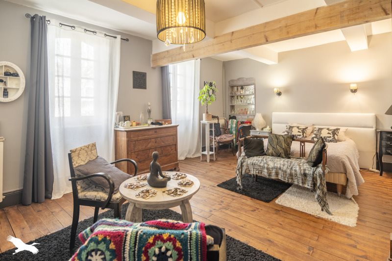 Espace vie cosy donnant sur une sortie accueillante avec atelier de 25 m².