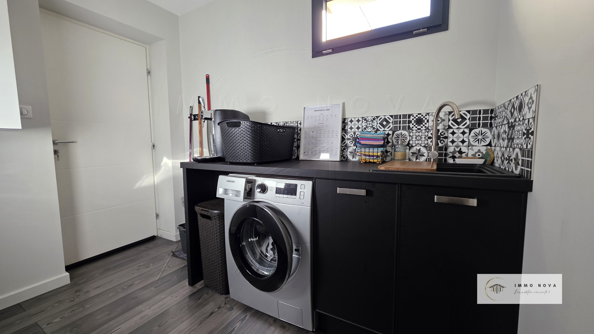 Un cellier/buanderie aménagé avec point d'eau et évacuations