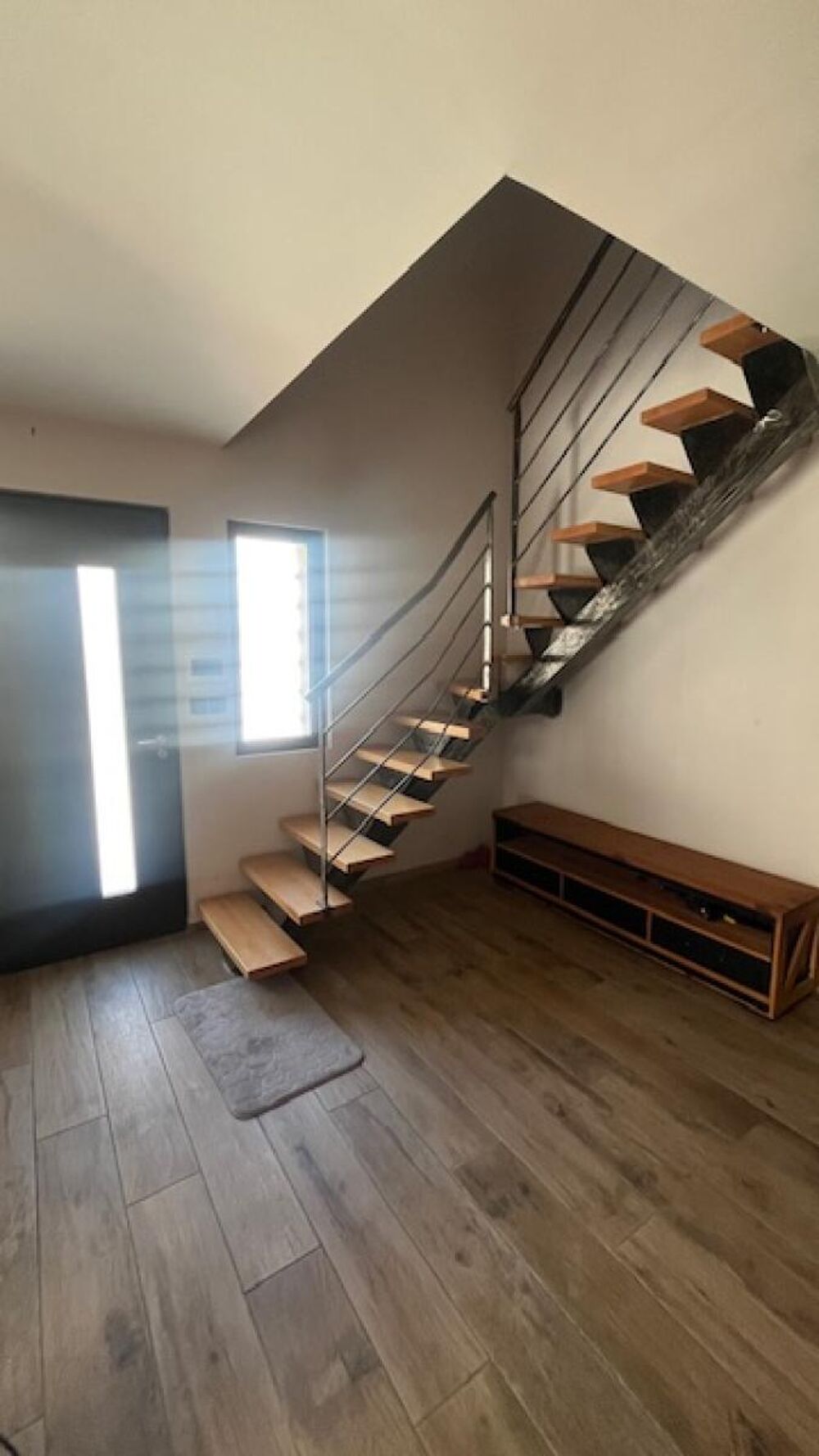 Elle se compose en rez-de-chaussée d'une entrée, sur la gauche une grande buanderie avec un garage aménagé en bureau.