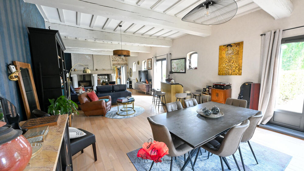 Dès l'entrée, vous serez séduit par un vaste séjour/salon lumineux offrant une belle hauteur sous plafond de 3,14 m, sublimée par une cheminée authentique qui confère à la pièce une atmosphère chaleureuse.
