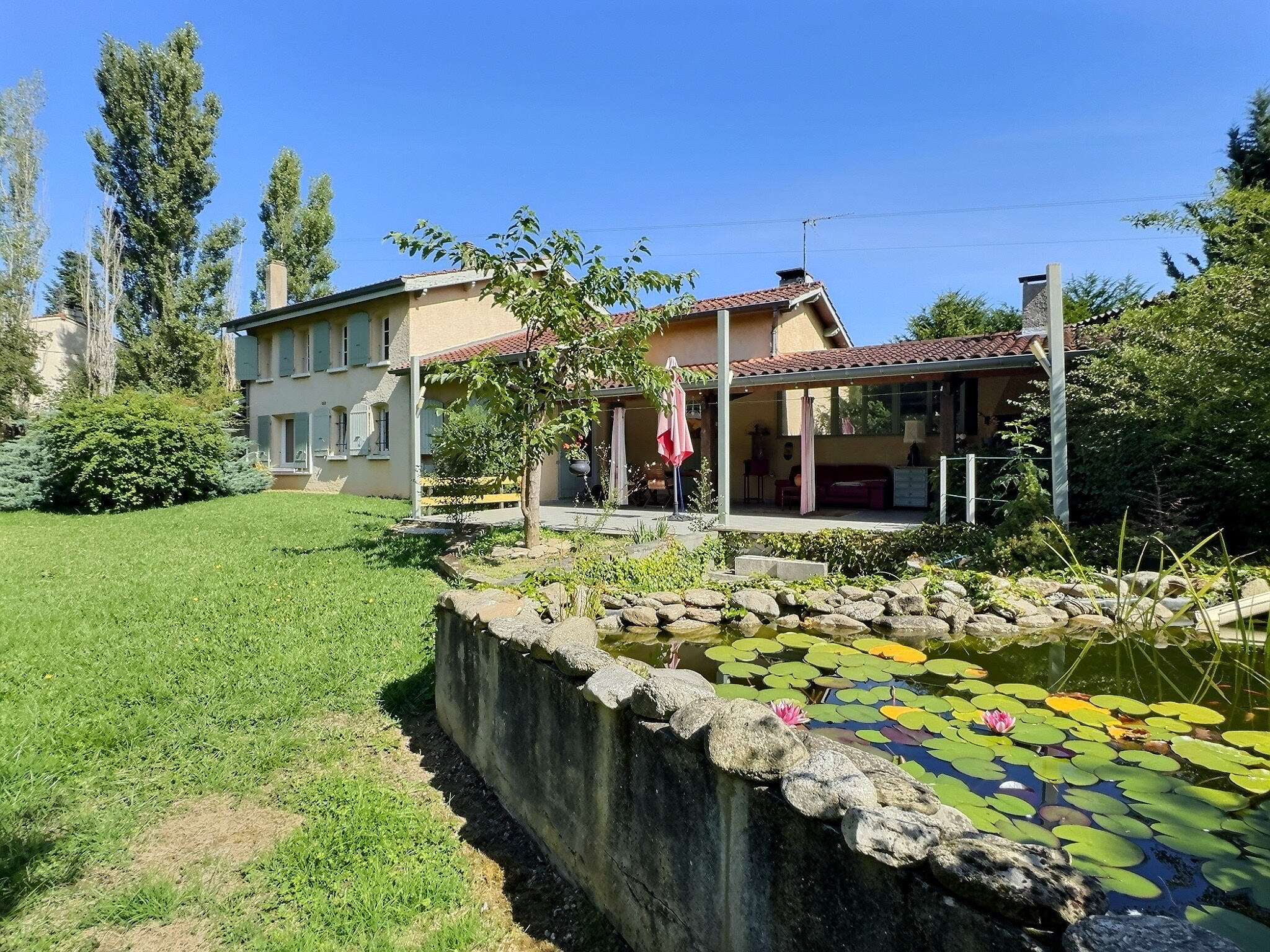 Vous profiterez également d'une belle terrasse couverte, idéale pour les repas d'été, et d'un jardin arboré et soigné.