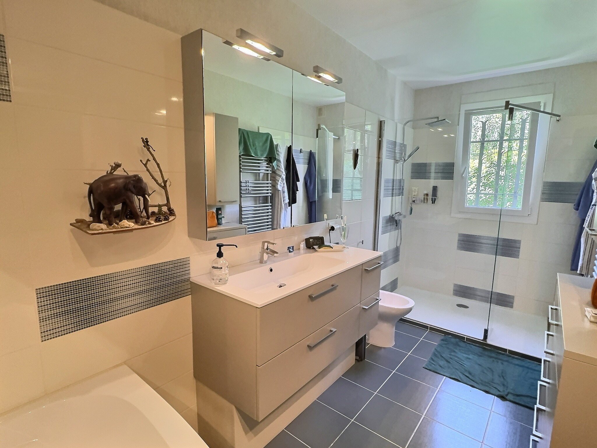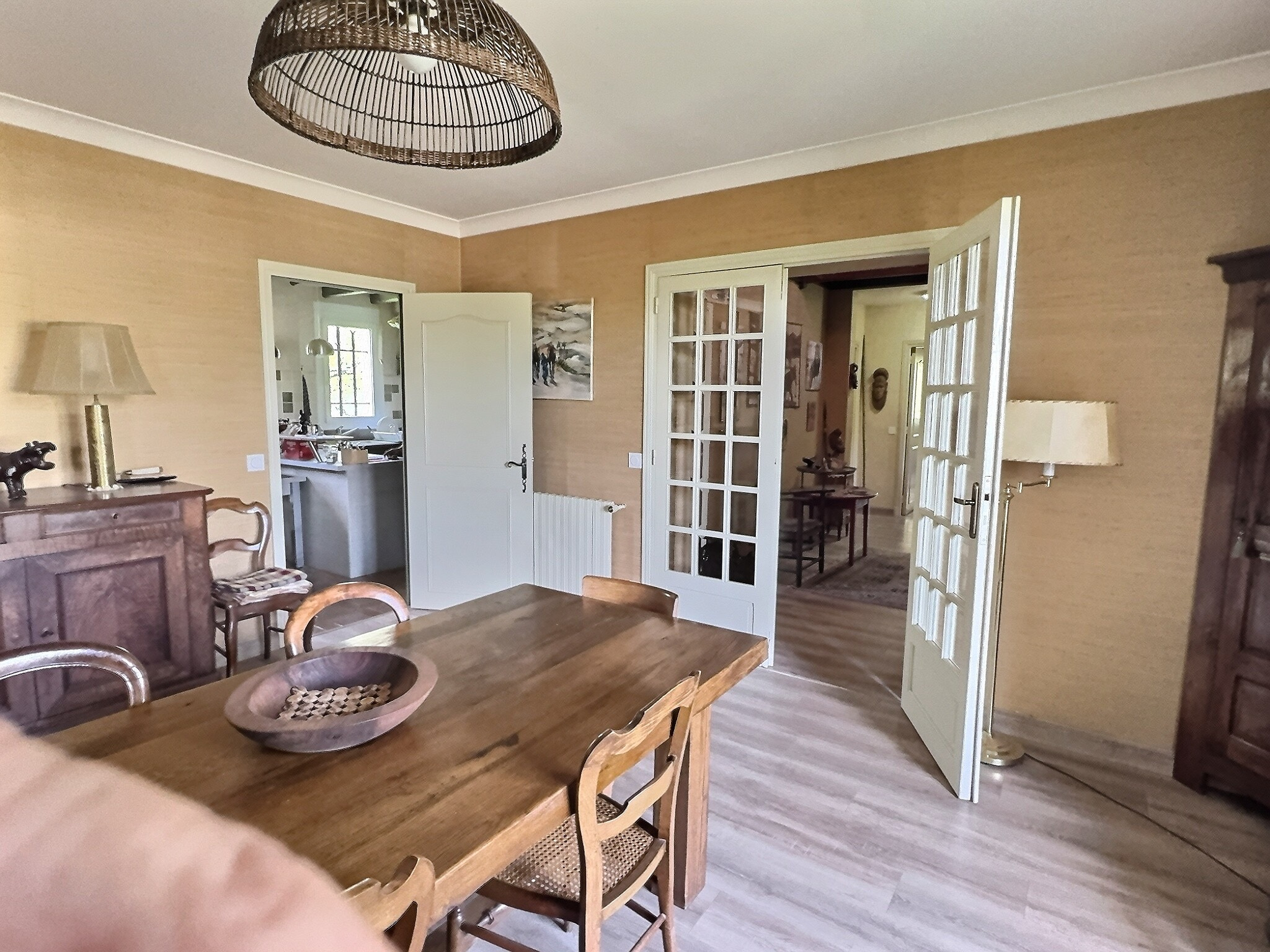 Un vaste séjour de 43 m2 avec cheminée, une grande cuisine avec coin repas, quatre chambres dont une suite parentale au rez-de-chaussée avec salle de bain et dressing. À l'étage, trois chambres supplémentaires et une salle d'eau, deux toilettes (un par niveau).
