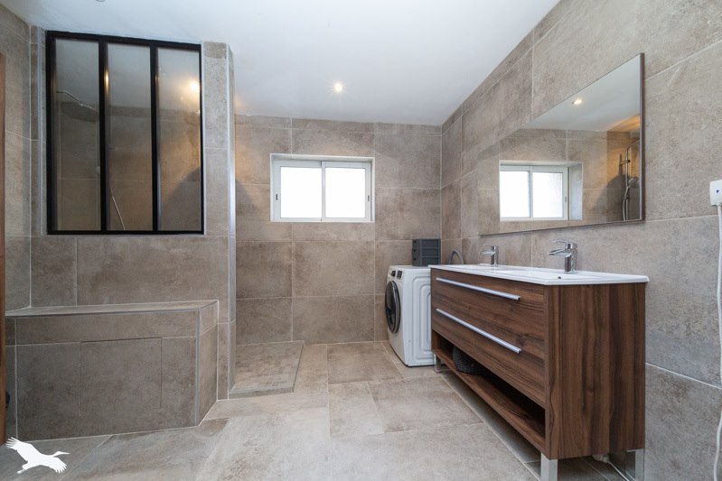 Elle se compose au RDC d'une cuisine ouverte sur une salle à manger, un séjour, une salle d'eau, une chambre et un WC.