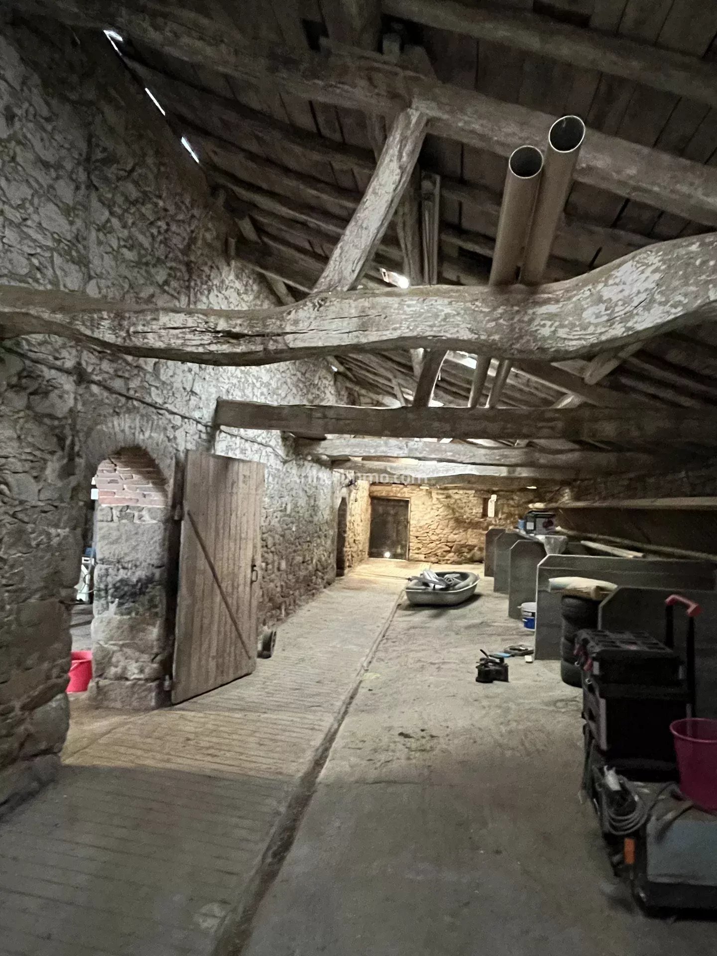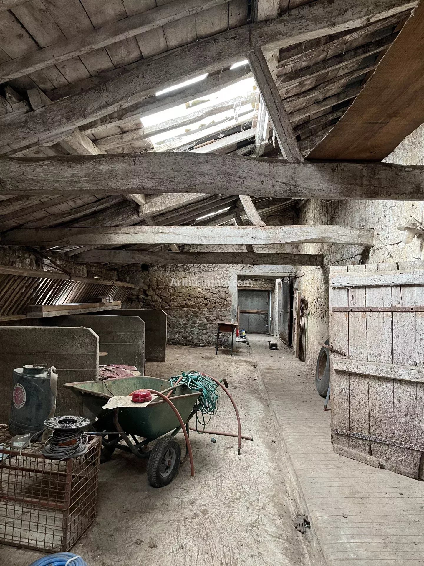 Une belle grange et ses trois appentis, en bon état, offrant de beaux volumes et une charpente saine, constitue l'élément central de la propriété.