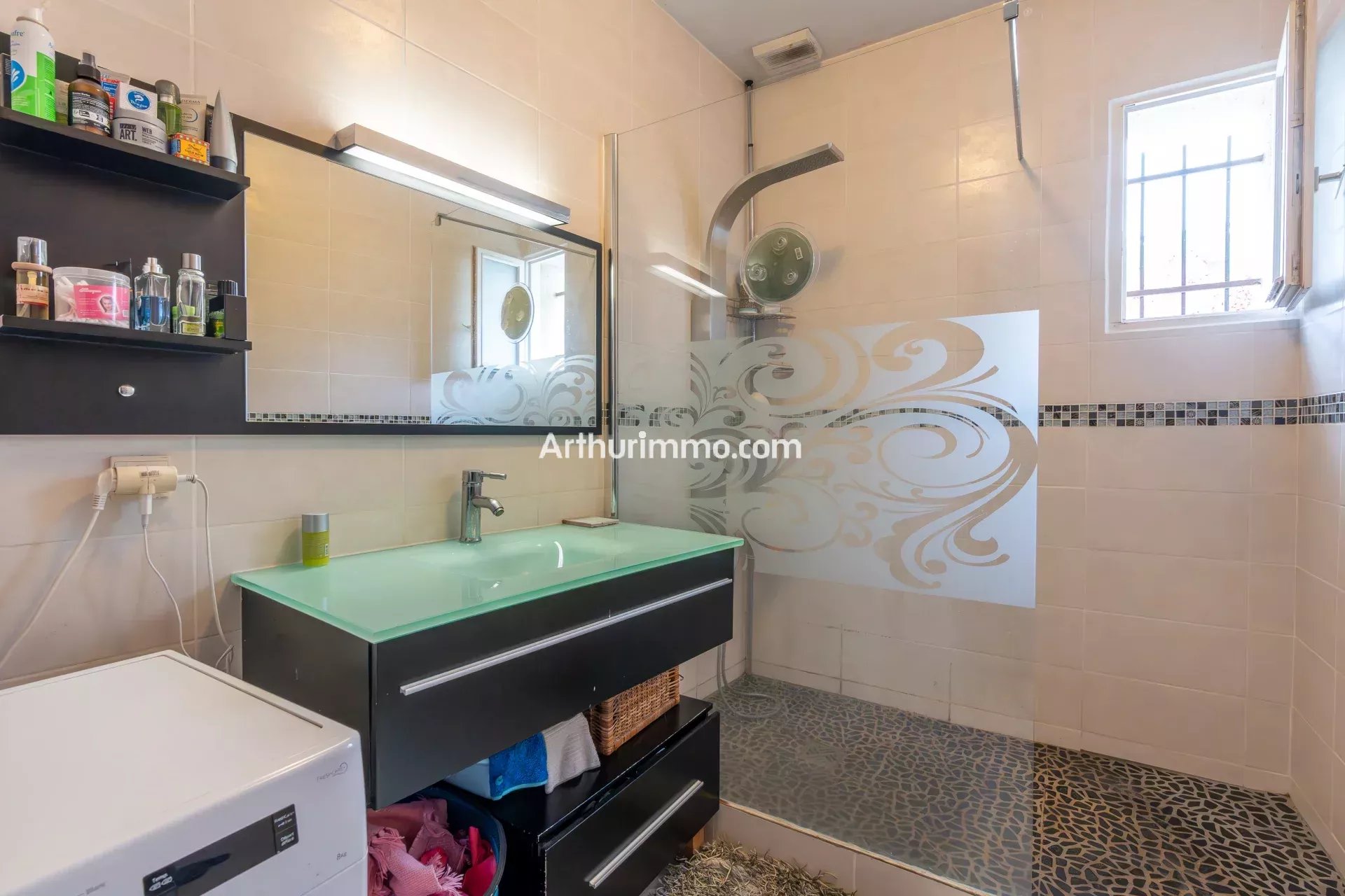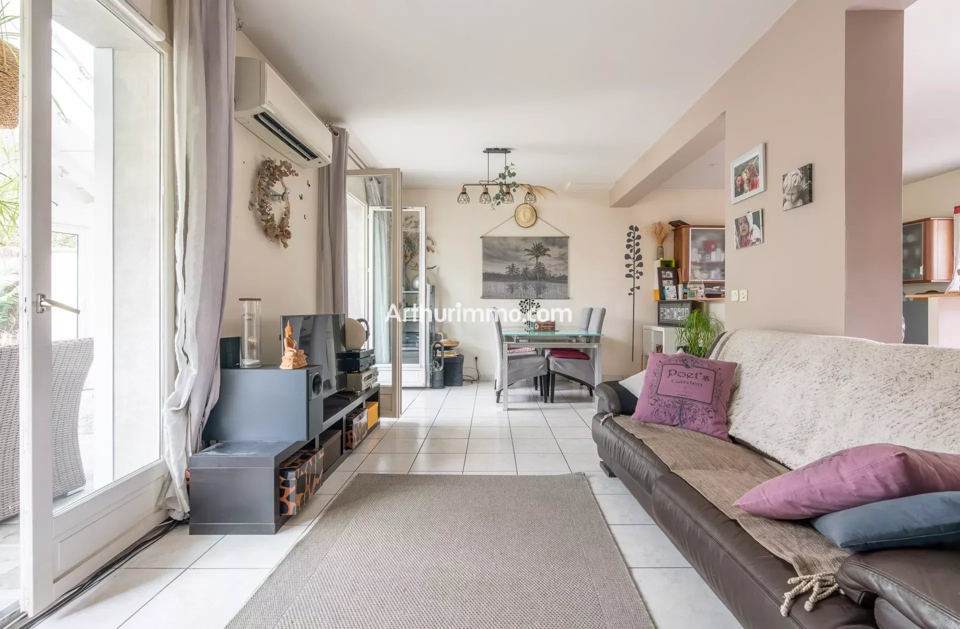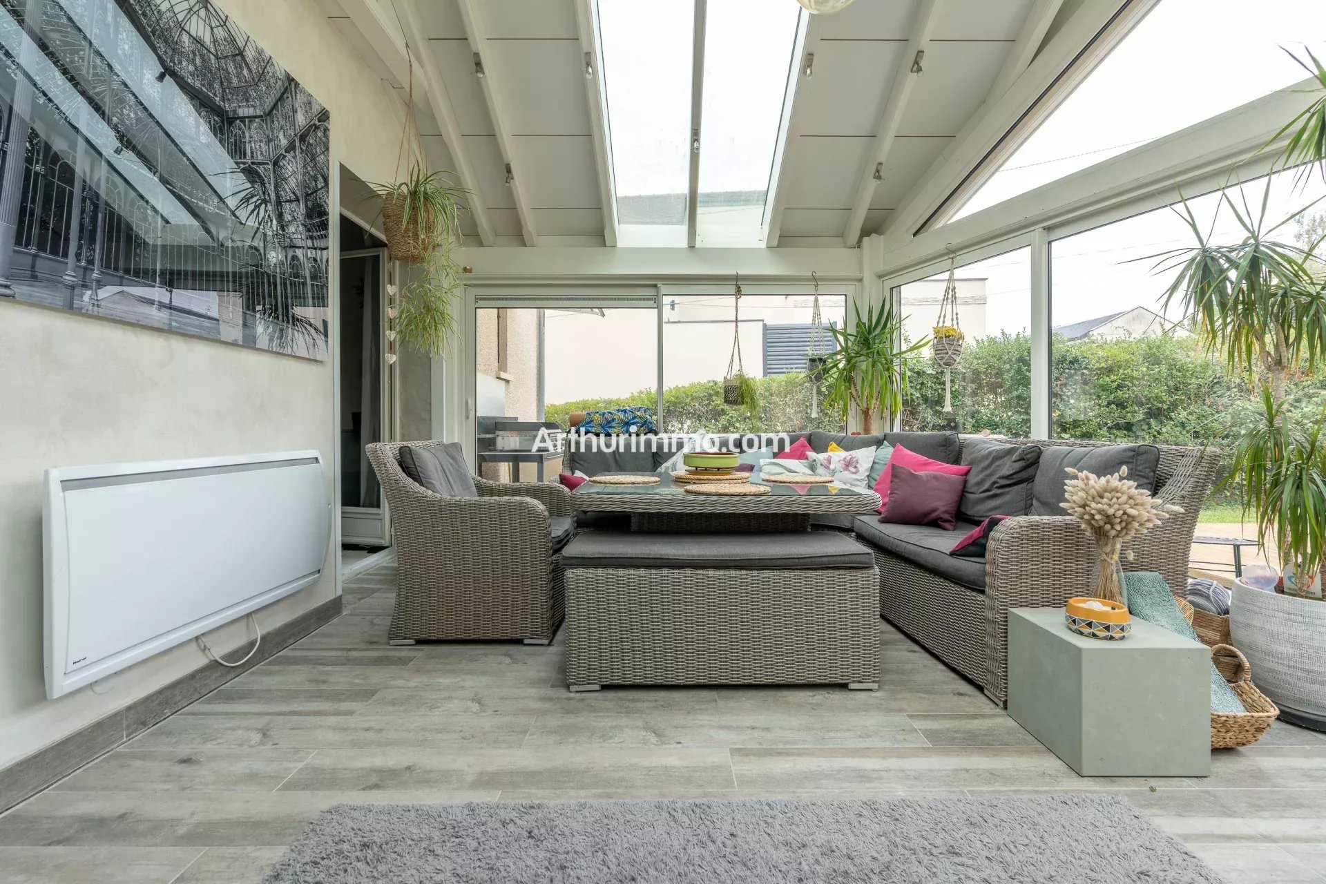 - Au RDC, entrée, cuisine, séjour donnant sur la belle véranda avec accès terrasse et agréable jardin sans vis à vis, un WC, une chambre avec salle d'eau.