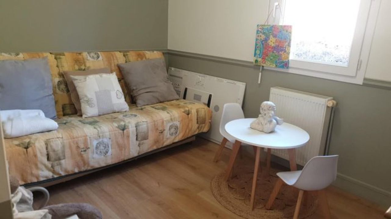 Au rez-de-chaussée : une cuisine, un grand salon/ salle à manger, une chambre, un WC.