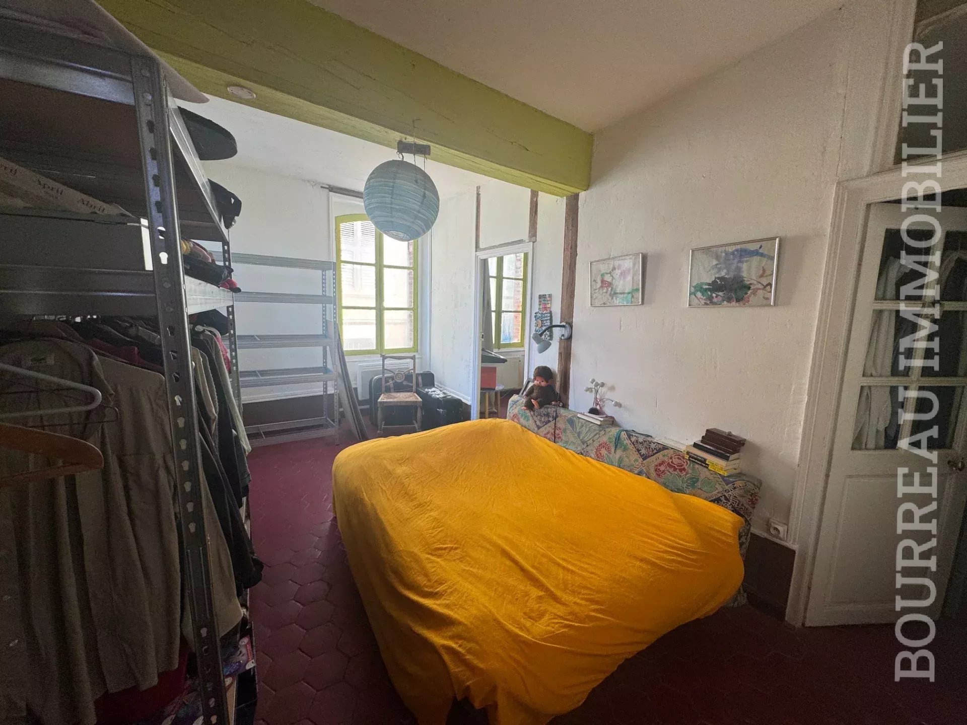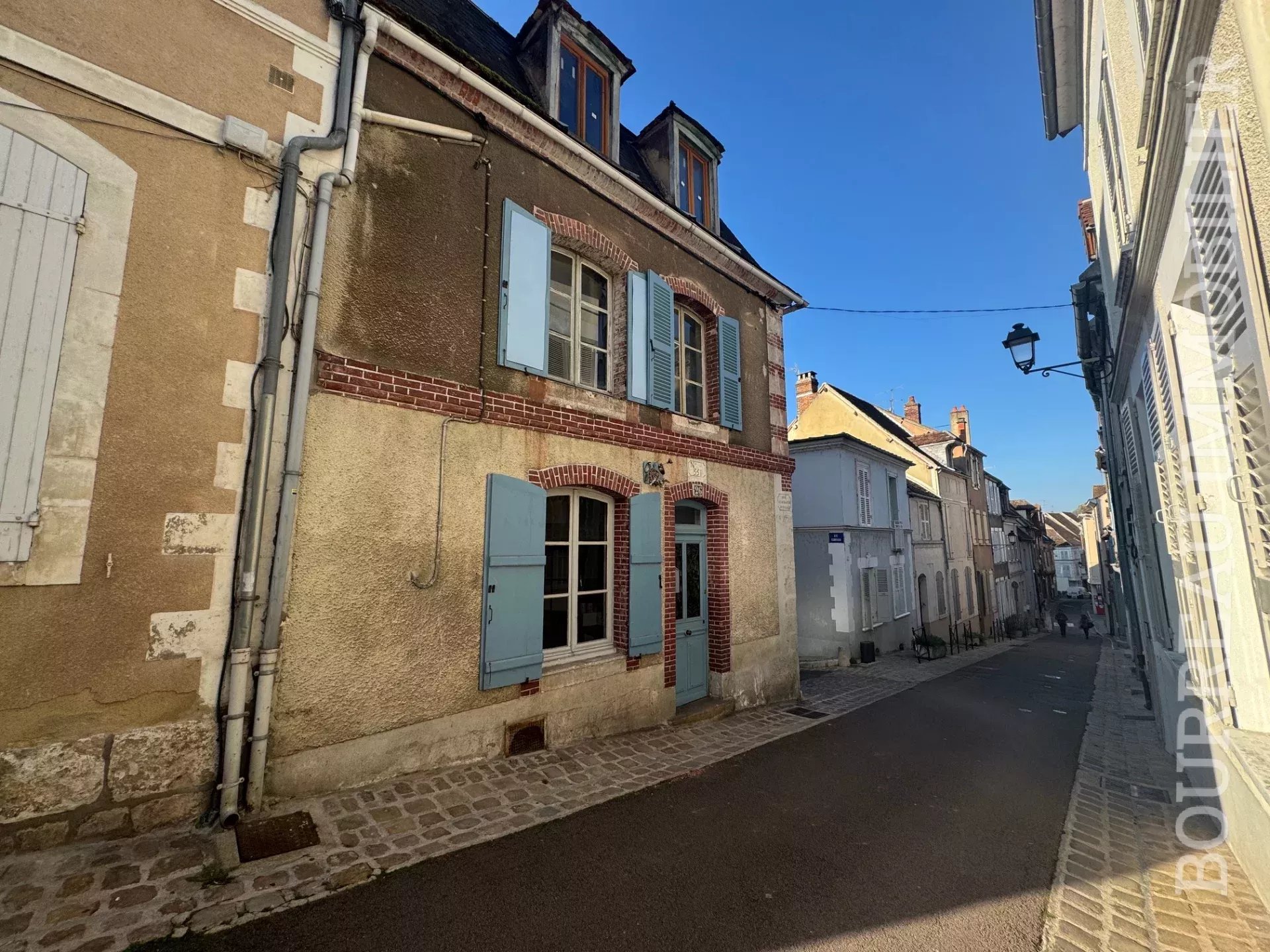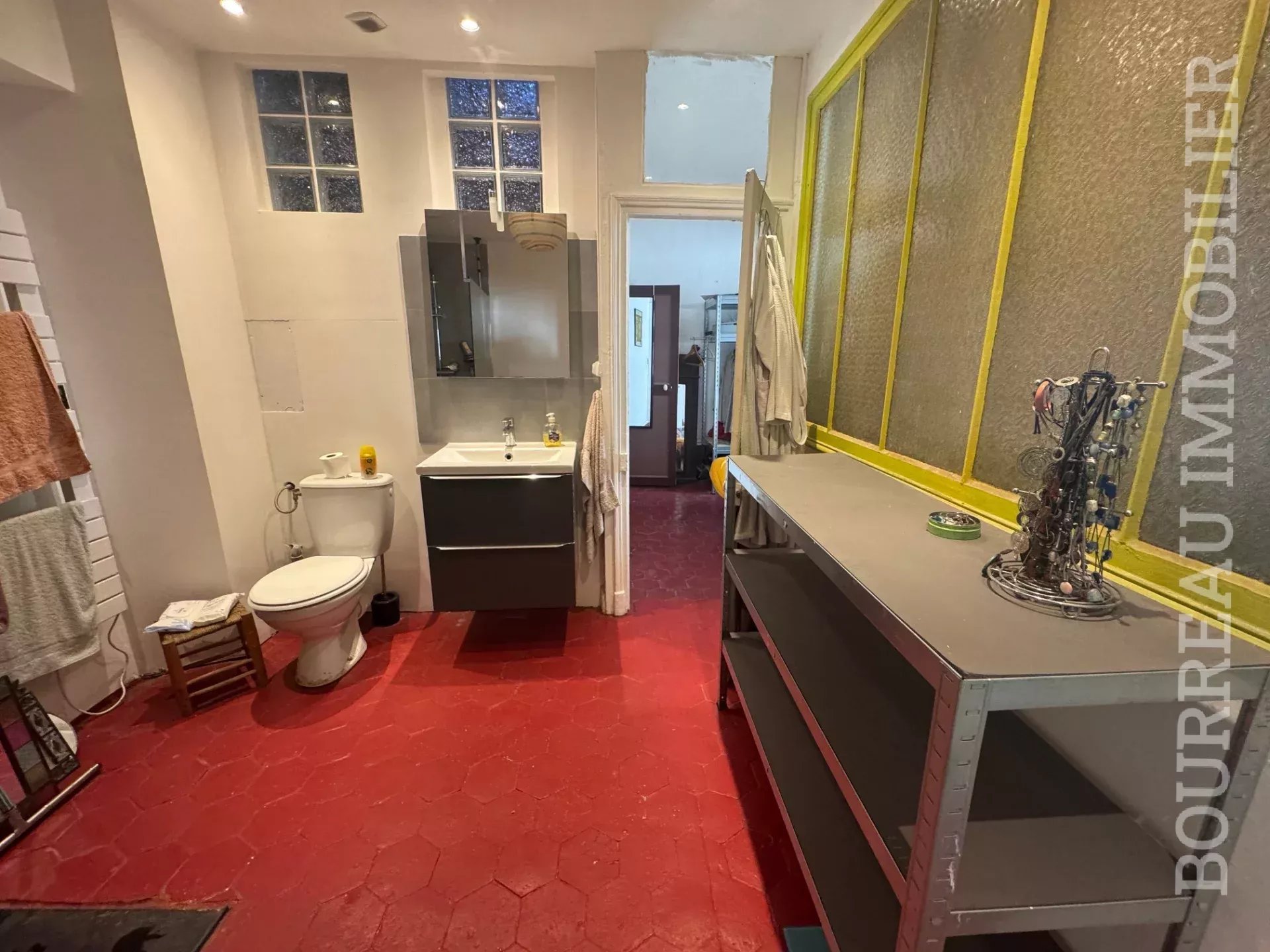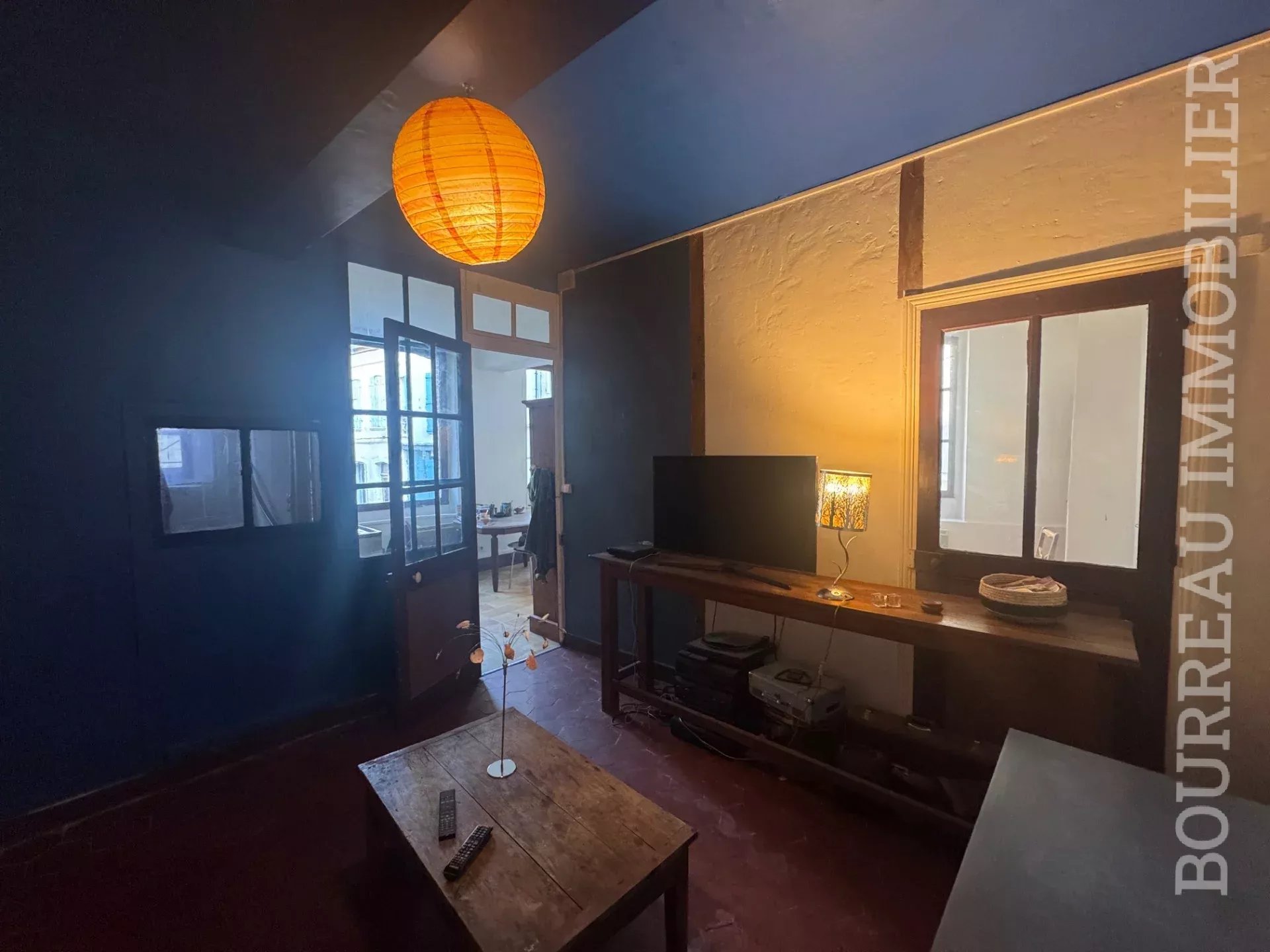 PROCHE COMMERCES MAISON DE VILLE style bourgeoise sans terrain comprenant : Entrée par la cuisine, salle à manger, salon, dégagement avec accès à la cave ET WC.1er étage : Palier desservant 2 chambres, salle d'eau avec wc.