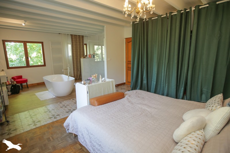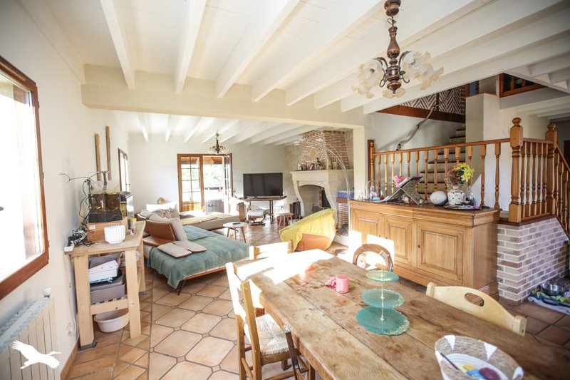 Au rez-de-chaussée, une pièce de vie lumineuse s'ouvrant sur une véranda, une cuisine équipée, et une suite parentale moderne de 30 m².