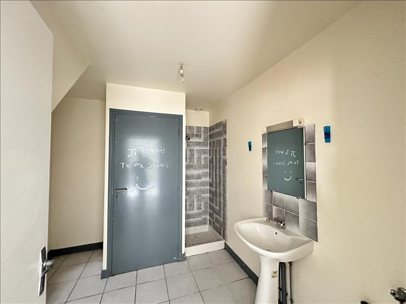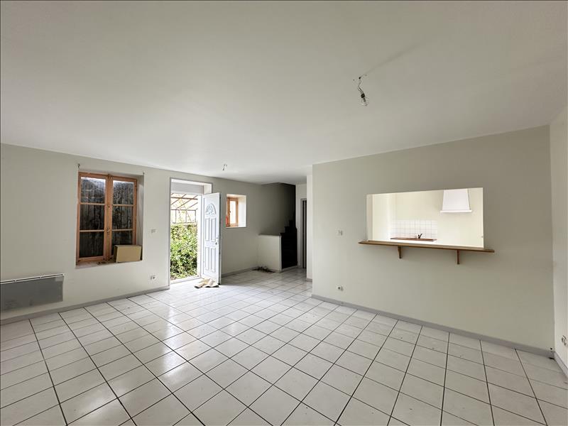 Maison de bourg composée d'une pièce de vie, une cuisine, un wc, une salle d'eau, à l'étage, un palier, deux chambres et un débarras.