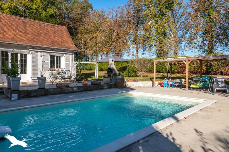Sur un terrain d'environ 3000m² avec piscine et cabanons.