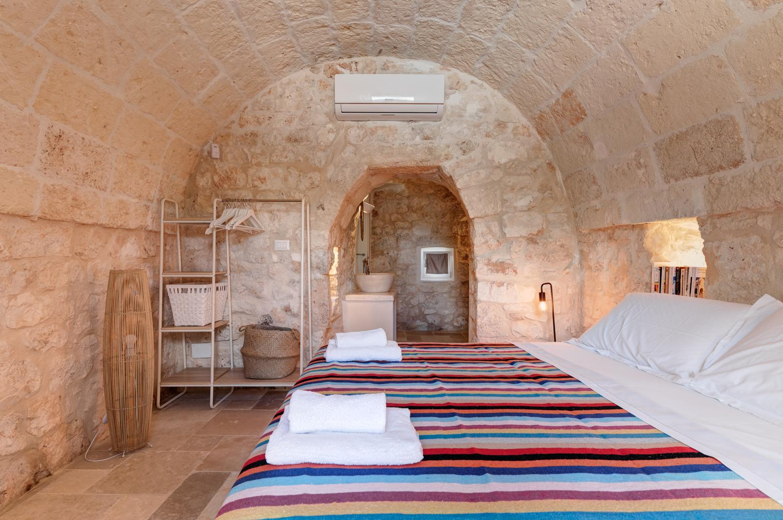 La villa combine architecture traditionnelle locale (pierres, voûtes, teintes naturelles) et confort moderne : climatisation, isolation, système de sécurité, arrosage automatique et accès facile.