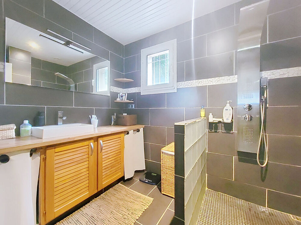 A vendre, charmante maison de 128 m² habitables, implantée sur un terrain de 1200 m², au calme et sans aucun vis-à-vis. Le rez-de-chaussée se compose d'une grande pièce de vie lumineuse avec cuisine ouverte équipée et aménagée, espace salle à manger et salon, de deux chambres, dont une grande chambres avec dressing, d'une salle d'eau, d'un WC, d'une buanderie. A l'étage, vous trouverez deux grandes chambres supplémentaires, disposant d'un point d'eau crée en 2022. Un double garage de 80 m2 vient compléter ce bien ainsi qu'un carport. De plus, une cuisine d'été, idéale pour profiter des repas en plein air lors des beaux jours pour les beaux jours. Le terrain, plat et entièrement clôturé, offre un cadre de vie agréable, paisible et intime.
