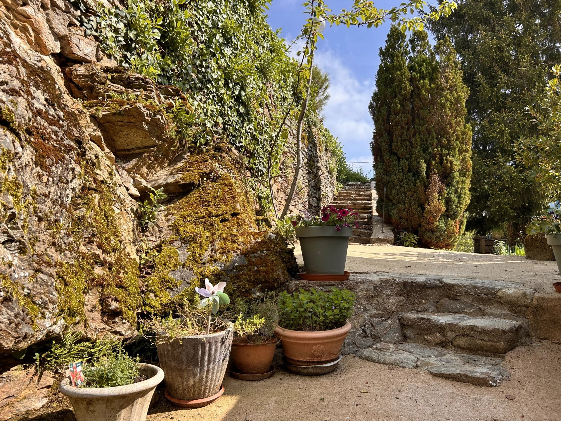 L'extérieur, entièrement clos de murs, comprend un garage, une véranda et un puits, le tout dans un environnement calme et préservé.