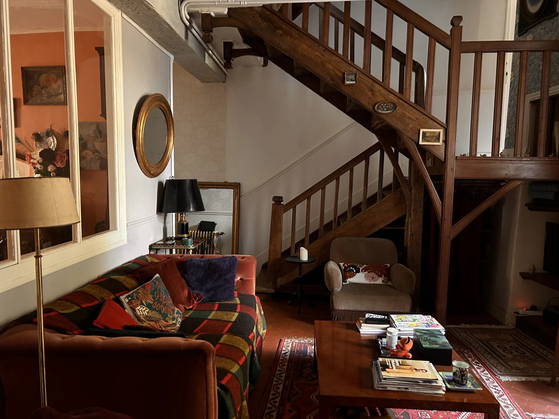 Un demi-étage mène à une salle d'eau avec WC.