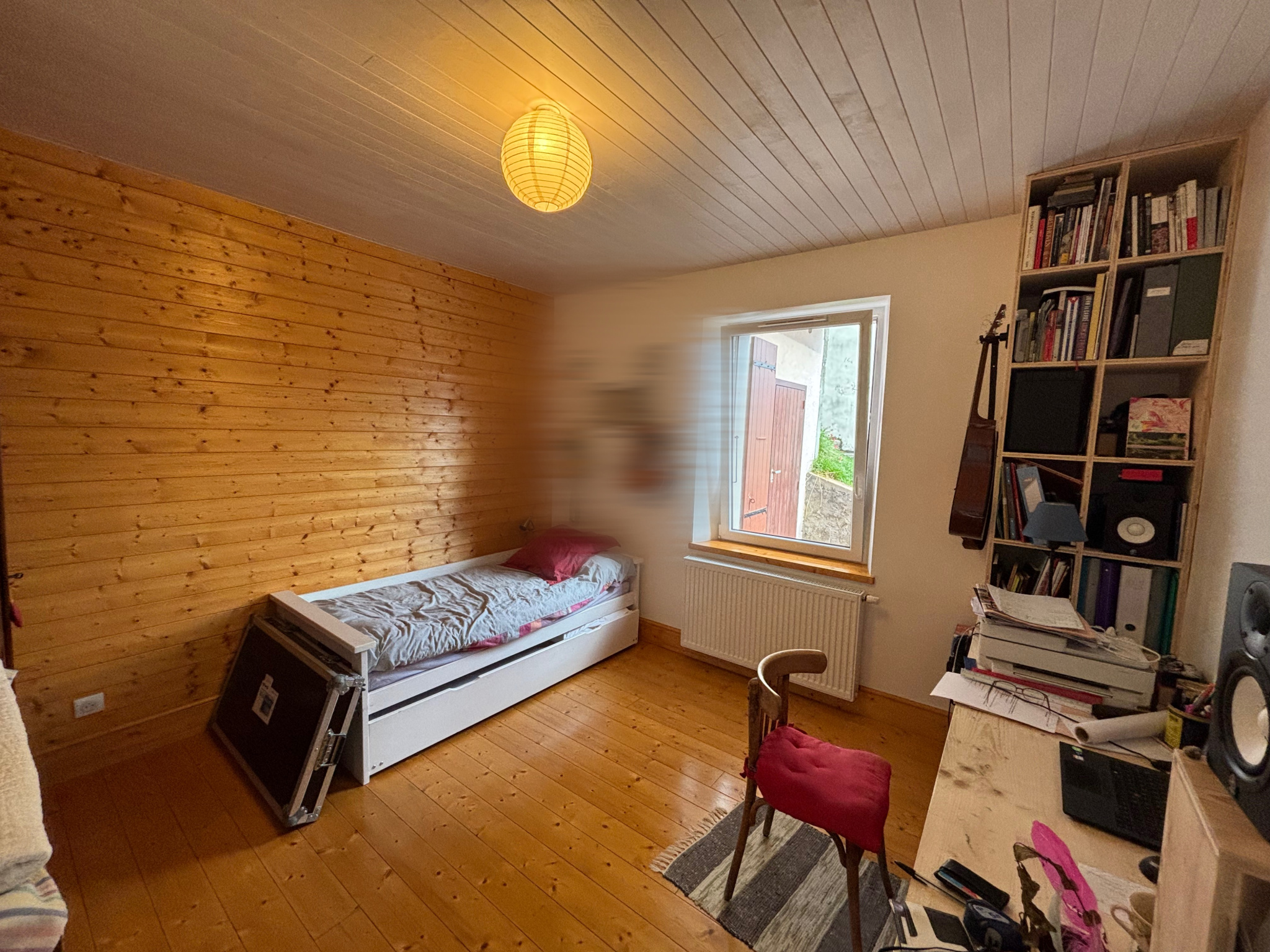 À l'étage, une chambre avec dressing et une pièce polyvalente pouvant servir de bureau, de chambre ou de salle de jeux complètent l'ensemble. Un accès direct au grenier permettant un espace de rangement supplémentaire.