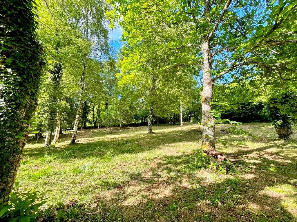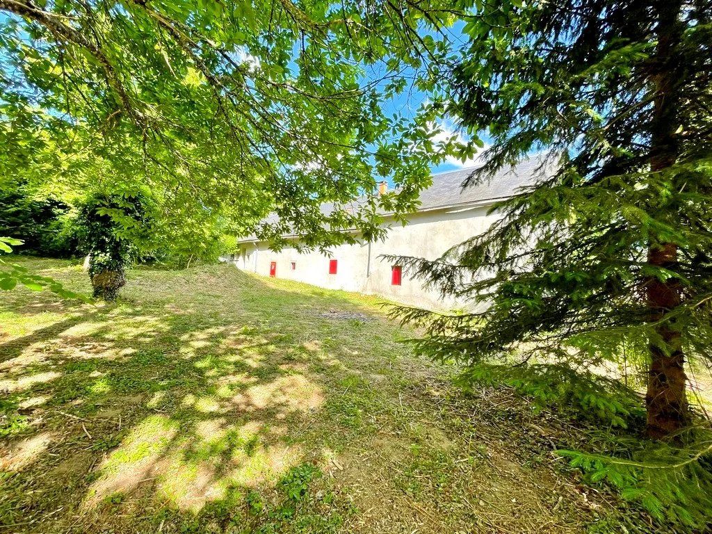 Cour devant et grand terrain arboré sur l'arrière.
