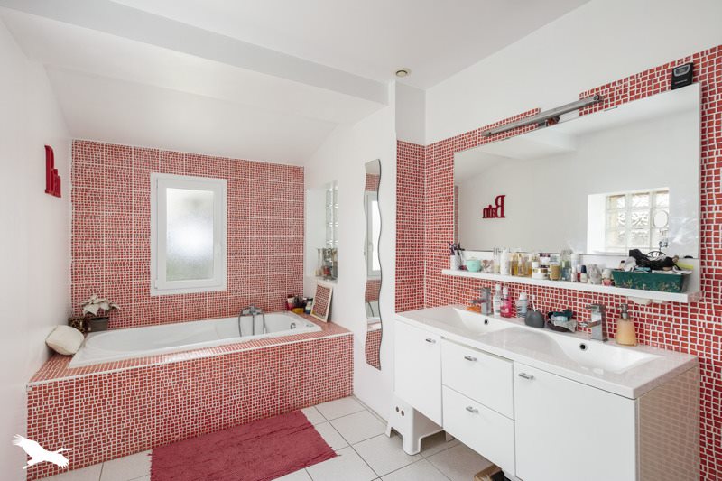 Elle est composée de 4 chambres dont 1 au RDC, une cuisine aménagée et équipée, une pièce de vie de plus de 55m², 2 salles d'eau, 2 WC et une véranda.