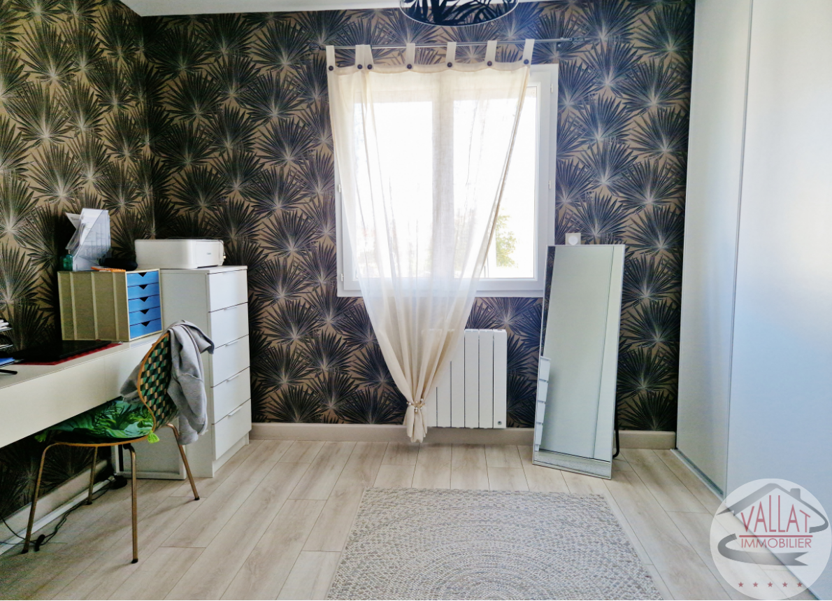 À l'étage, l'espace nuit se compose d'un dégagement de 4 m2 avec un placard, desservant deux chambres confortables de 12 m2 dont une avec placards, une salle d'eau moderne de 4 m2 et un WC indépendant.