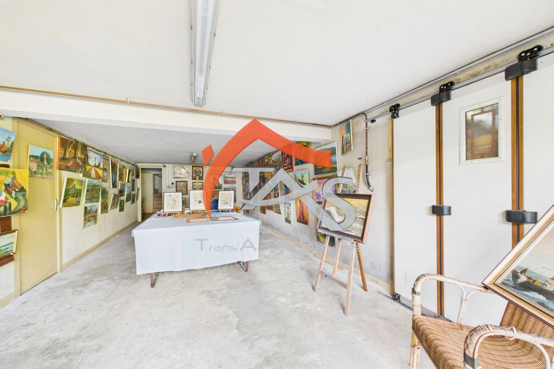 Sous-sol complet de 145m² avec portail électrique et garage.