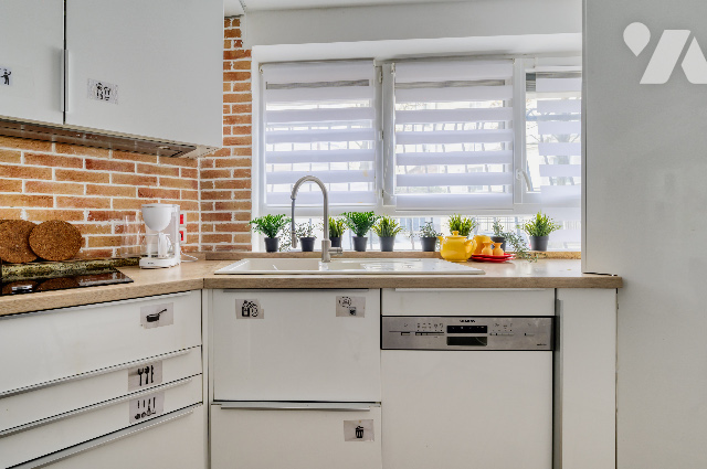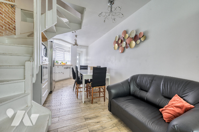 Au rez-de-chaussée, une pièce de vie d'environ 30 m² avec cuisine équipée & aménagée, sol en carrelage. Accès direct à une petite cave.