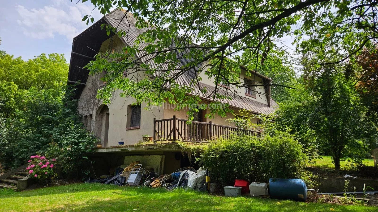 La maison est édifiée sur une parcelle de terrain de 3345m² entièrement arborée.