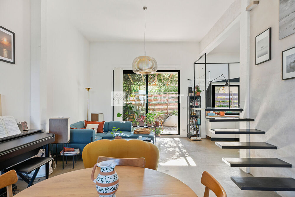 MAISON DE TYPE LOFT AVEC JARDIN ET TERRASSE - LA MOUTONNE - ATYPIQUE Située dans un quartier résidentiel très calme de La Moutonne, cette maison atypique séduira les amateurs de volumes, de lumière et d'architecture contemporaine. Elle offre une vaste pièce de vie de 59 m² avec une belle hauteur sous plafond de 3,50 m. Ce grand espace regroupe un salon, une salle à manger et une cuisine ouverte moderne, avec un accès direct vers l'extérieur. Au rez-de-chaussée, vous trouverez également une chambre, une salle d'eau, une buanderie ainsi qu'un WC indépendant. A l'étage, une mezzanine surplombant le séjour permet d'aménager un coin bureau ou une seconde chambre selon les besoins. La maison bénéficie de deux extérieurs : une terrasse intimiste végétalisée et un jardin orienté vers les collines avec une vue dégagée. L'environnement est calme tout en restant proche des commodités, des commerces et des axes principaux. Maison lumineuse, volumes atypiques, prestations de qualité, cadre de vie agréable. Stationnement facile devant la maison.