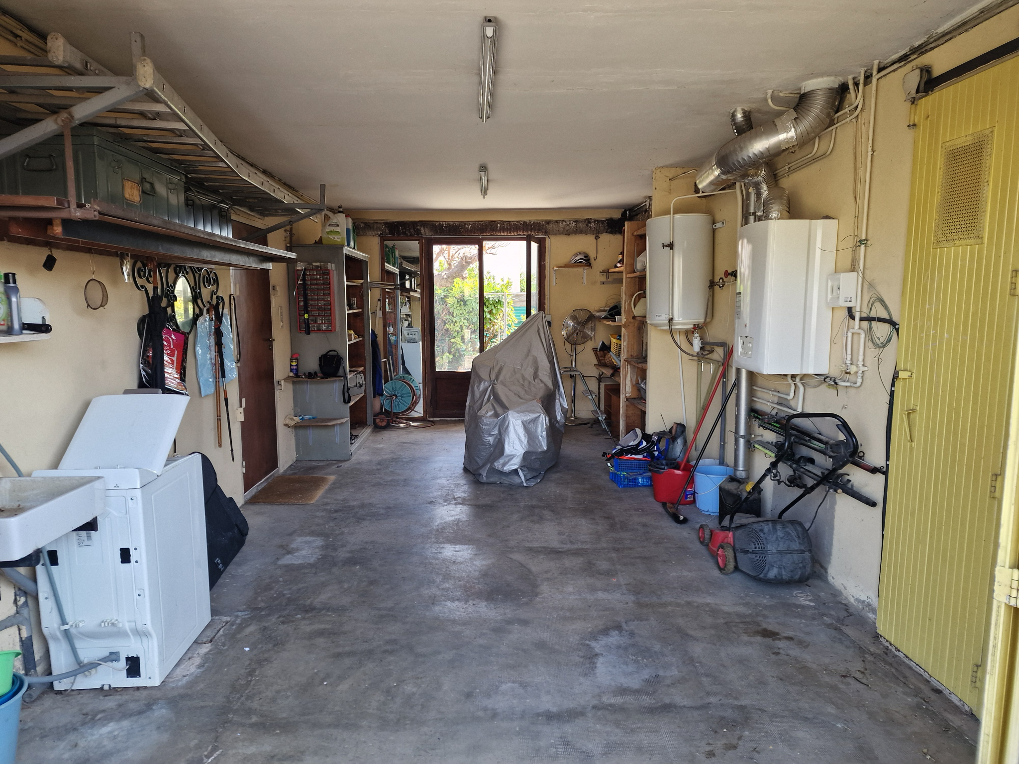 Le garage de 25 m2 est traversant, avec un cellier et un coin toilette. Sur la partie avant, un carport pour stationner un véhicule à l'abri. Les commerces et centre médicaux se trouvent à proximité, le centre ville de Béziers est à 10 minutes à pied, et l'arrêt du bus est tout proche.