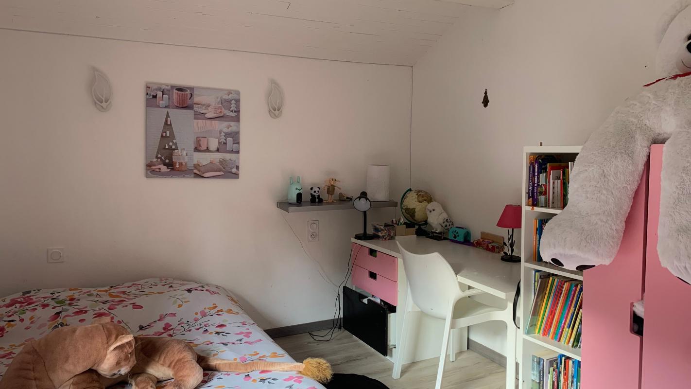 A l'étage : deux grandes chambres avec dressing, une salle de bain, ainsi que des wc.