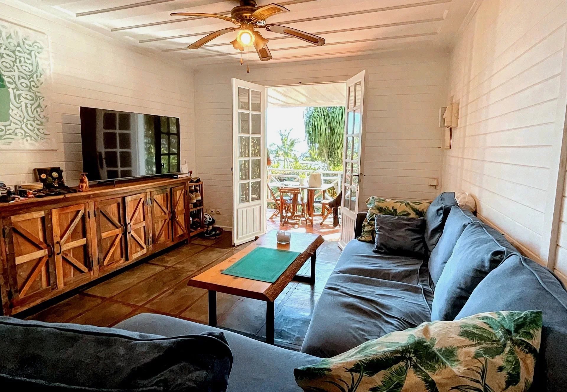 D'une superficie d'environ 58 m² habitables, elle offre deux chambres et un espace de vie ouvert sur la terrasse, idéal pour profiter de la vie dedans-dehors toute l'année, au rythme des alizés et du chant des oiseaux.